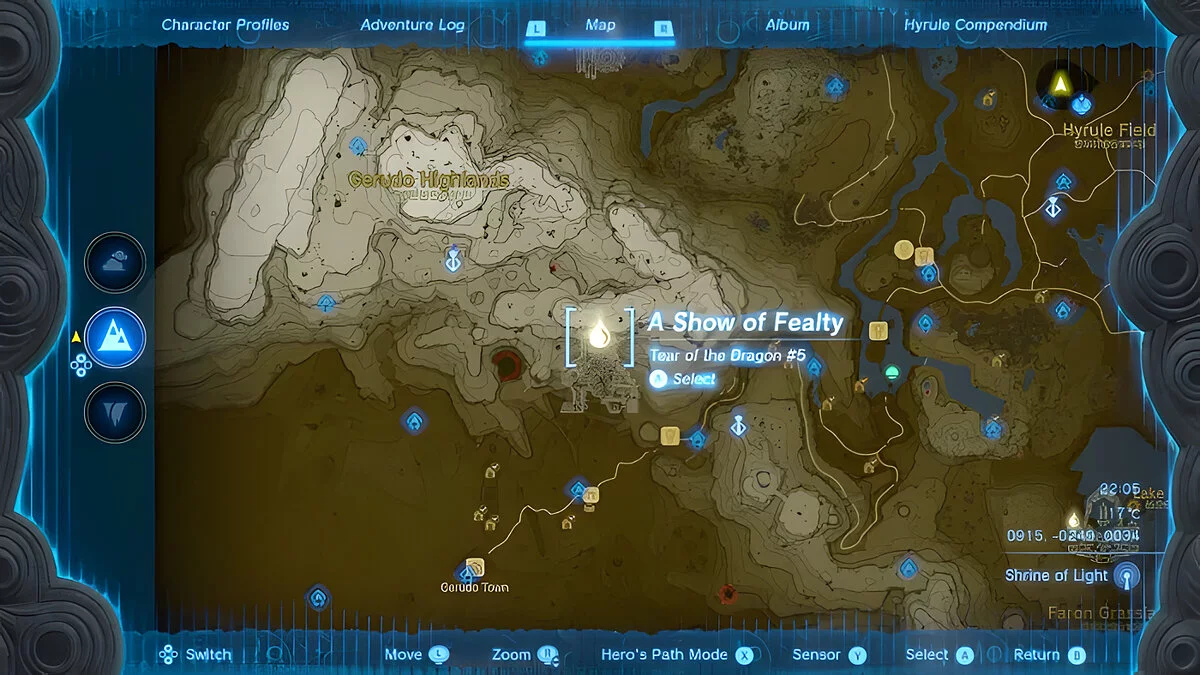 Следующую слезу «Зельда и Соня» (Zelda and Sonia) ищите к северу от высокогорья Герудо, неподалёку от хребта Хайрул.