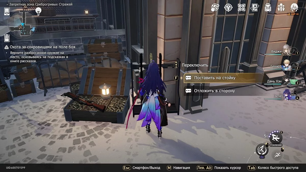 Неподалёку от каждой из них вы найдёте разбросанное оружие. Подберите его и поставьте на стойку.
