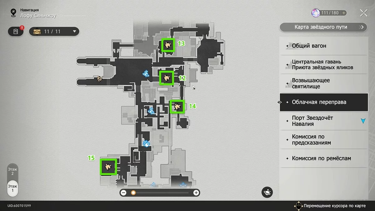 Следуйте в Облачную переправу и отыщите очередной гексанексус, который обозначен на карте цифрой «12». Для решения загадки поверните нижний блок влево два раза.
