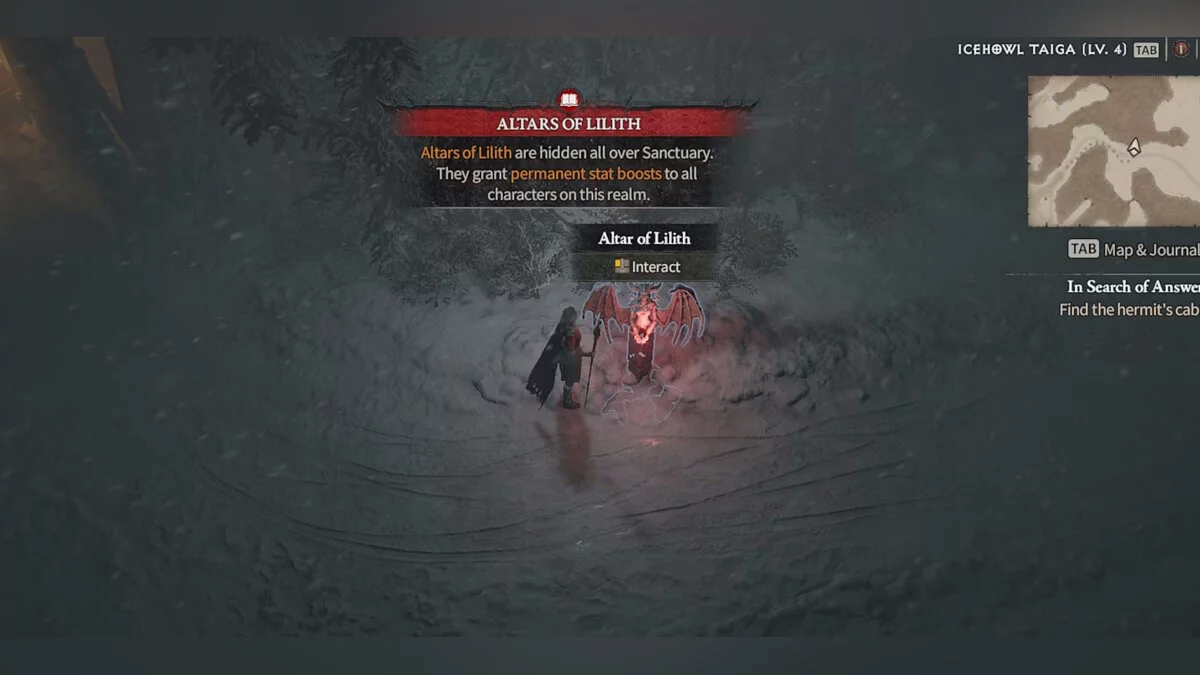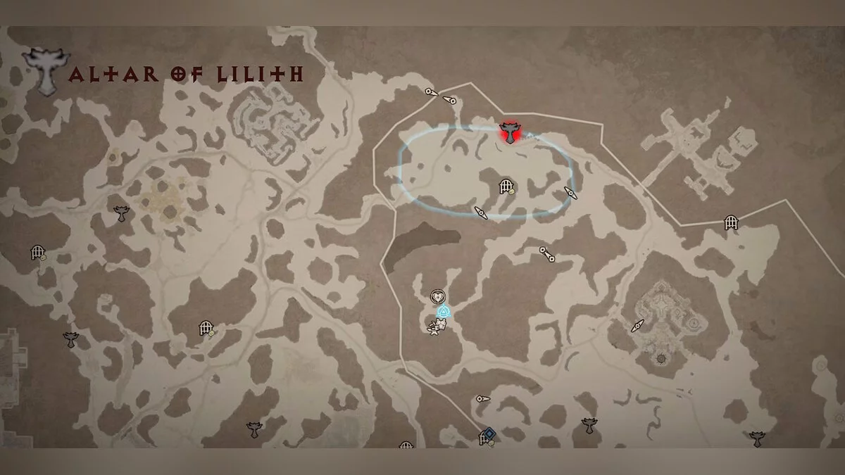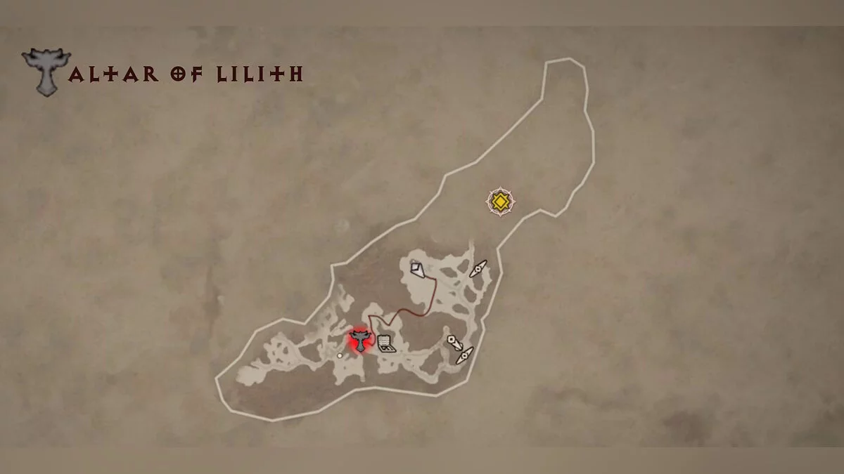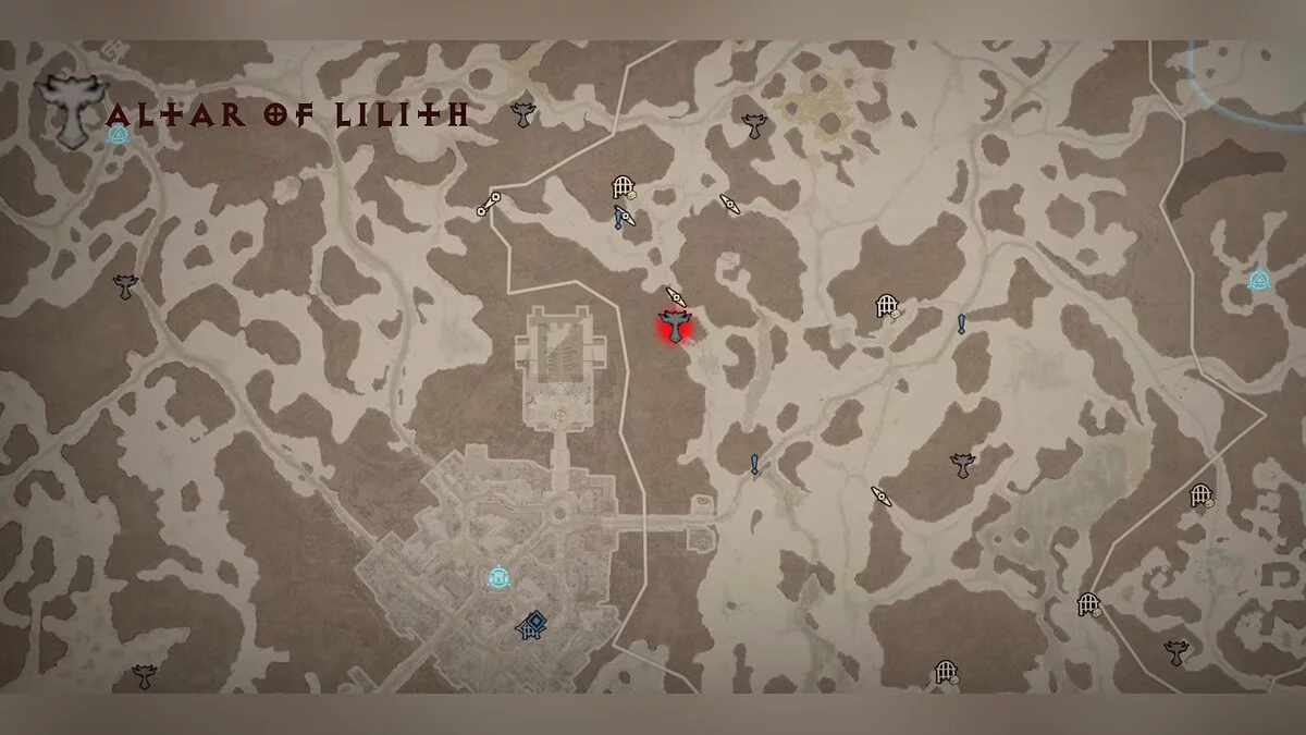 Идите на северо-восток от точки телепорта, чтобы найти этот алтарь Лилит.