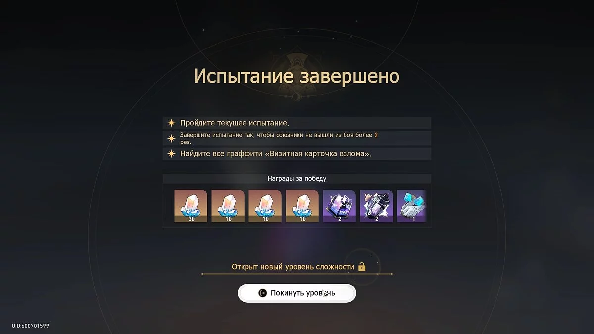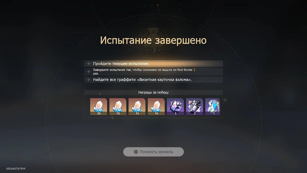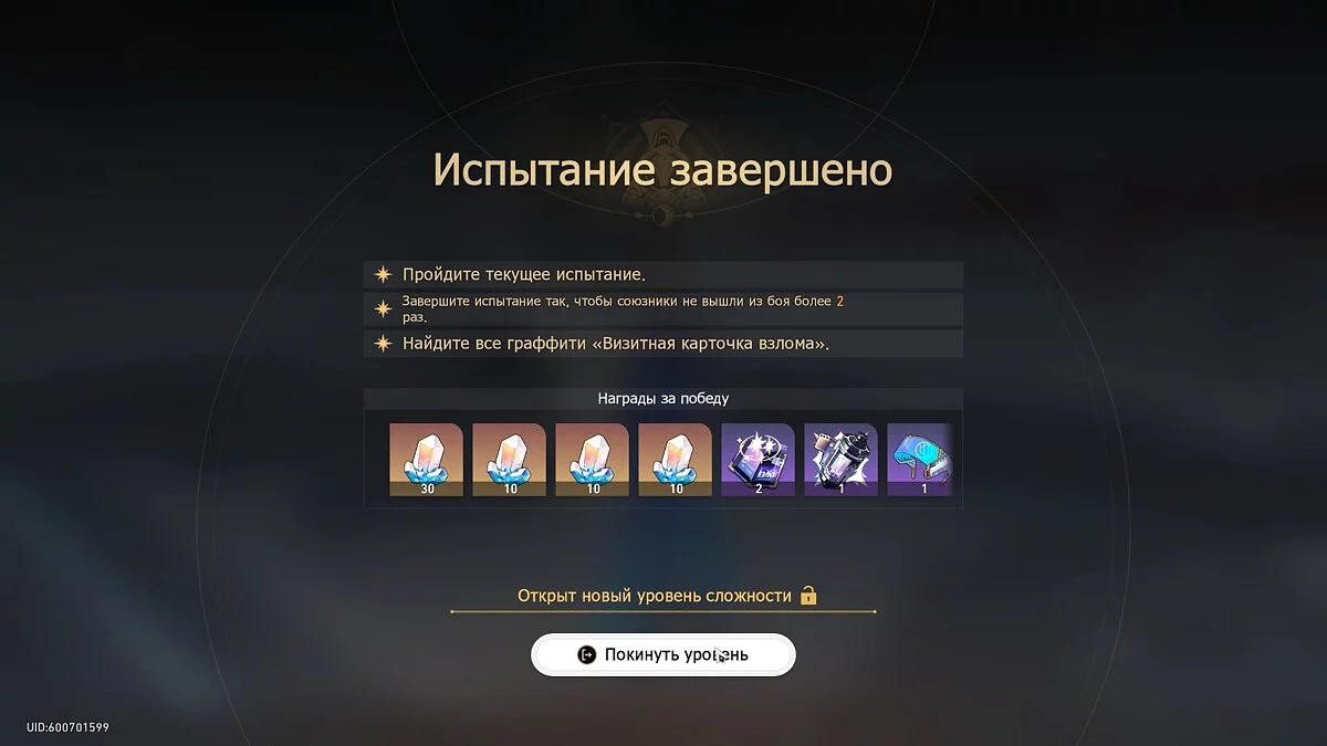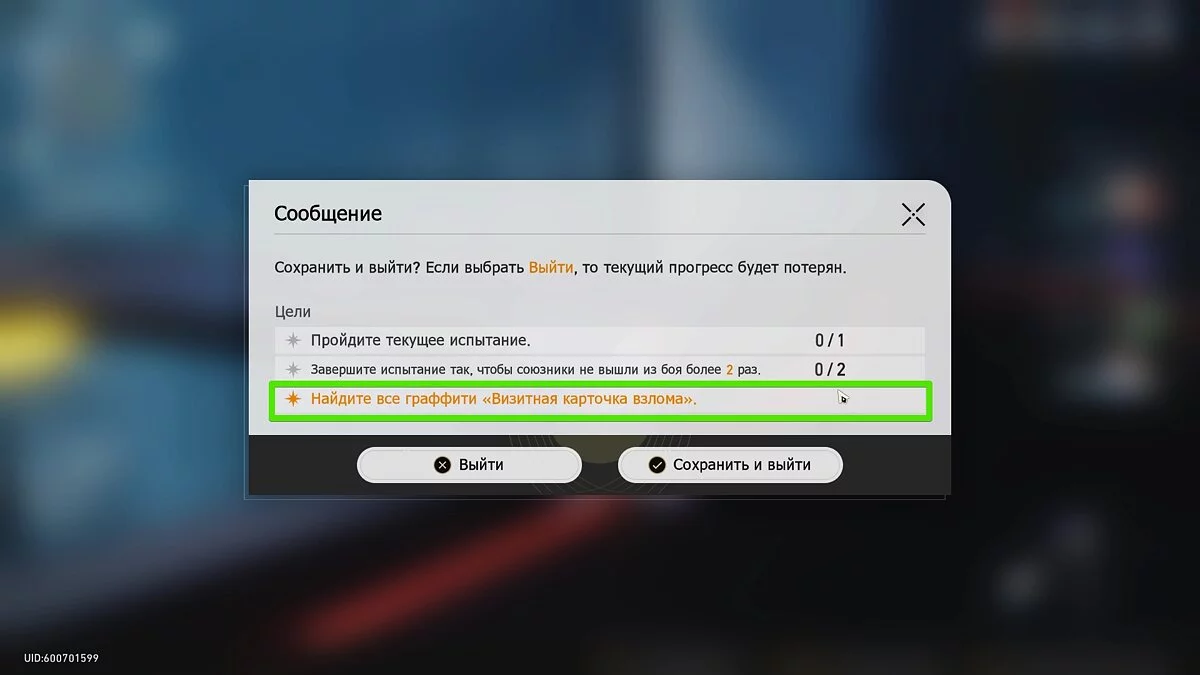 Примечание: Если вы не собрали все три граффити Визитной карточки взлома, то не получите дополнительную награду. Перед выходом из зоны испытания убедитесь, что нашли их все. Это можно сделать, нажав на клавишу «Esc».