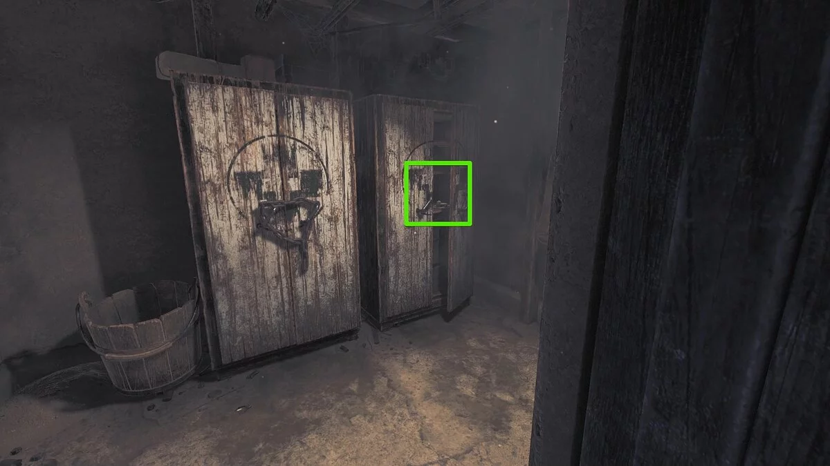 - Шкафы. Деревянные шкафы разбросаны по всему бункеру, и это укрытие намного безопаснее, чем столы. Всё же, как мы уже заметили, след из крови не остановит монстра, и вы будете раскрыты.