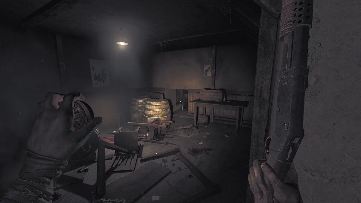 - Револьвер. Патроны для пистолета в Amnesia: The Bunker буквально на вес золота. Вы будете находить по одному-два патрона в каждой области, поэтому тратить их на монстра — не самое лучшее решение. Однако если вы оказались в тупике, а ближайшее сохранение было сделано два десятка минут назад, другого выхода не останется. Стоит отметить, что чудовище убежит только после двух попаданий.