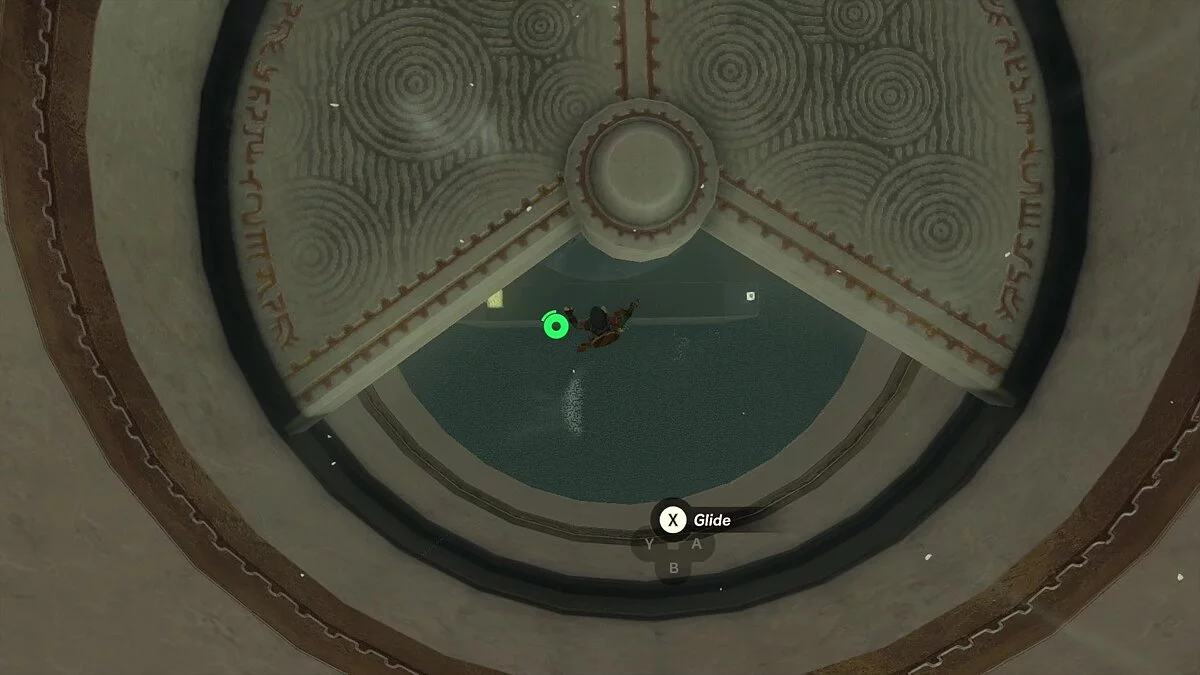 - Местонахождение: Район Цапного холма. Святилище находится в кратере Гизы. Спуститесь вниз, чтобы взять кристалл. Вы можете использовать различные инструменты Зонай в этой области или запустить воздушный шар с помощью Чаромонтажа;