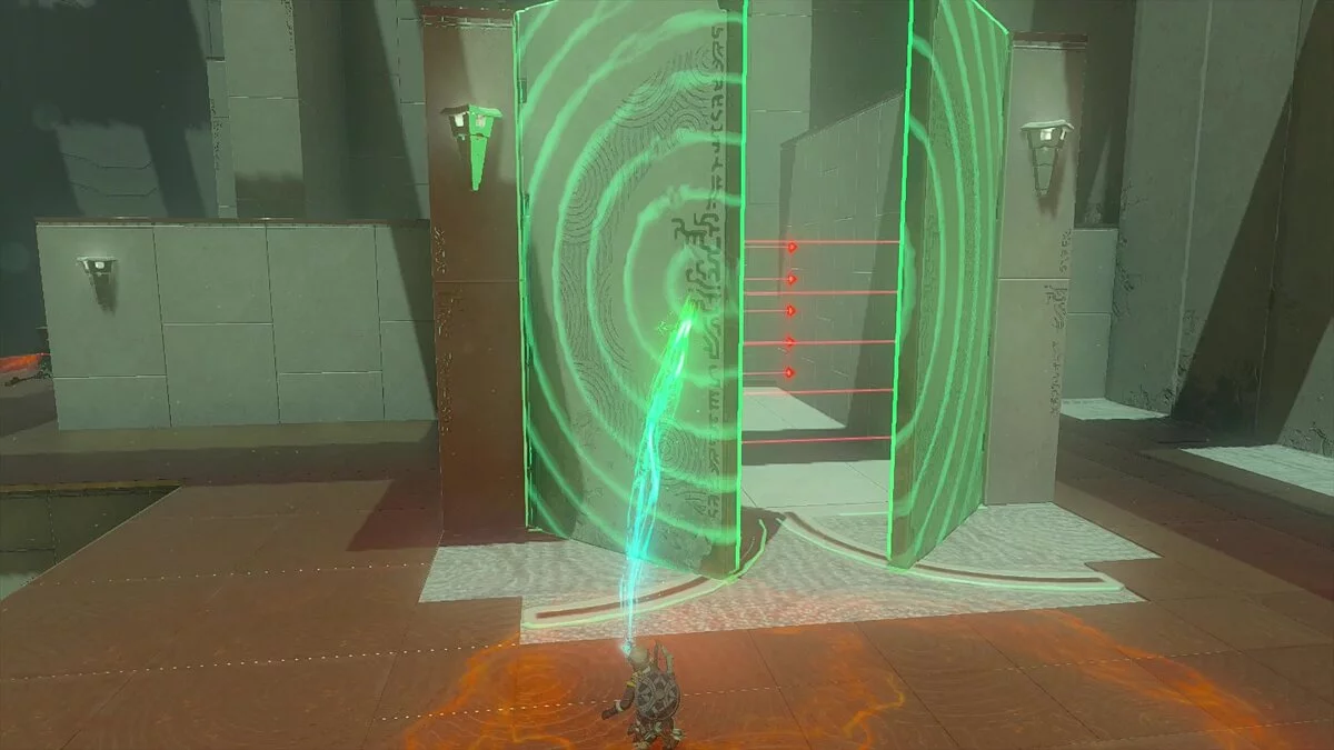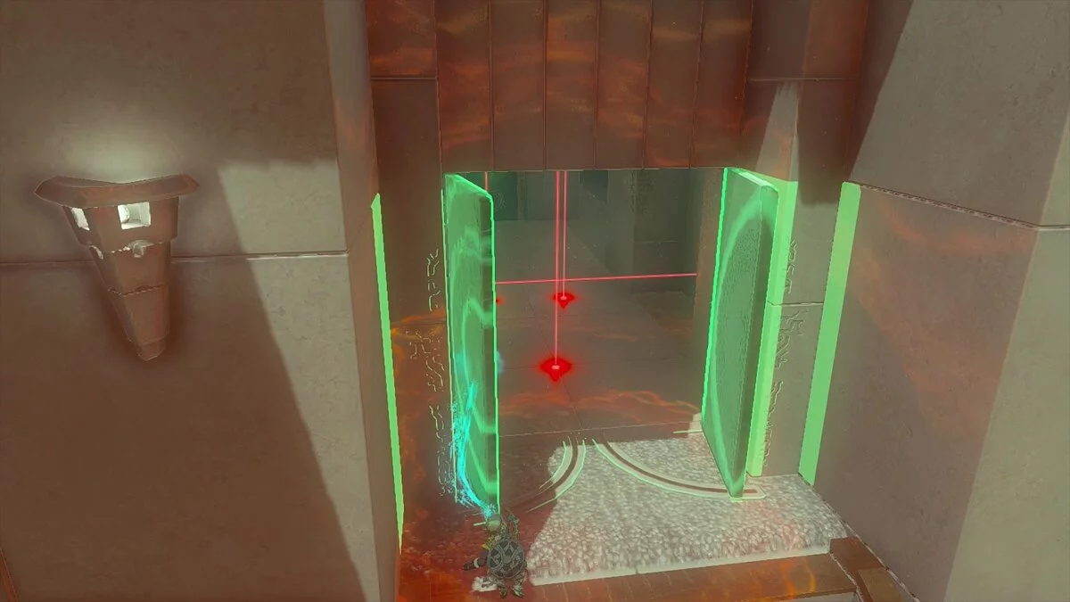 Когда вы войдете в святилище, вы увидите справа отверстие, в которое должен пройти шар, а также закрытые ворота. Используйте Комбикинез на каменных дверях перед входом в храм, чтобы открыть их. Внутри вы увидите непроходимую лазерную сетку, которая откроет люк в полу, если вы коснетесь лазеров. Идите за угол слева от двойных дверей и уничтожьте одного врага. После того, как он будет уничтожен, используйте Чаропортал , чтобы подняться на следующий уровень в конце пути.