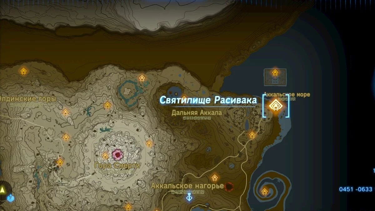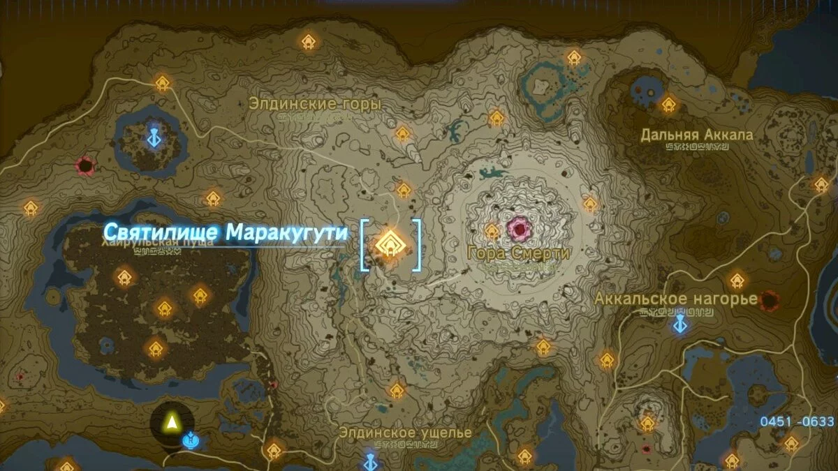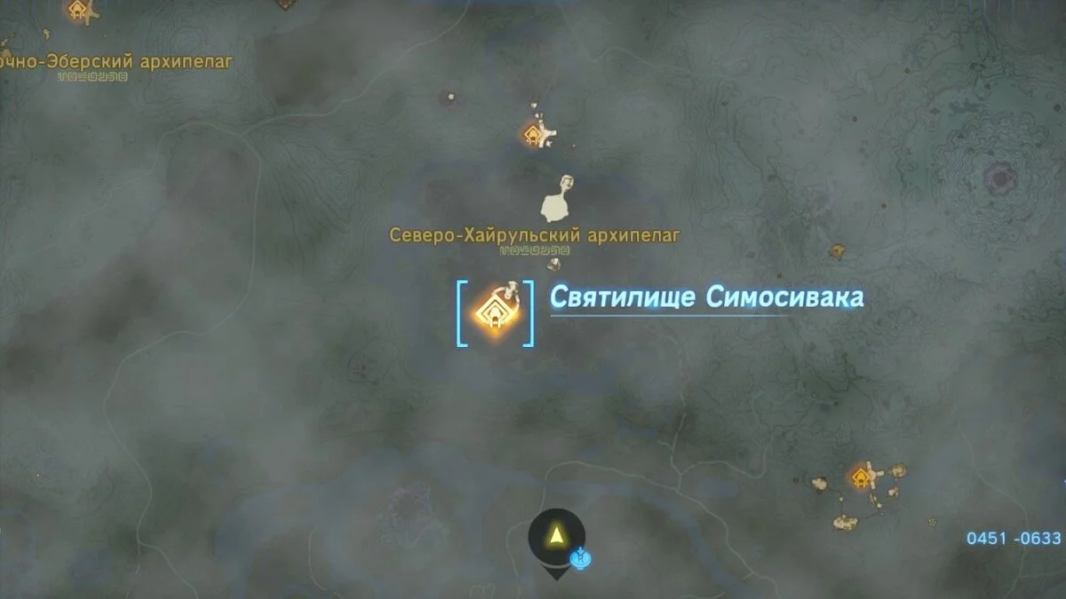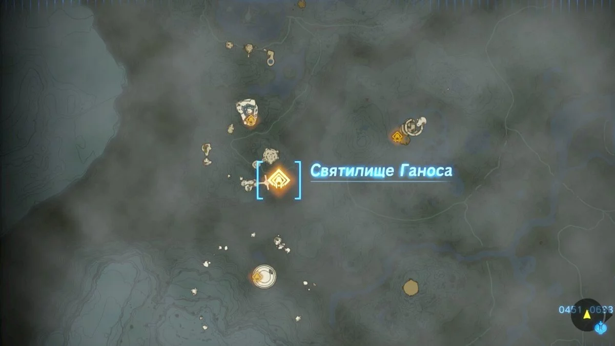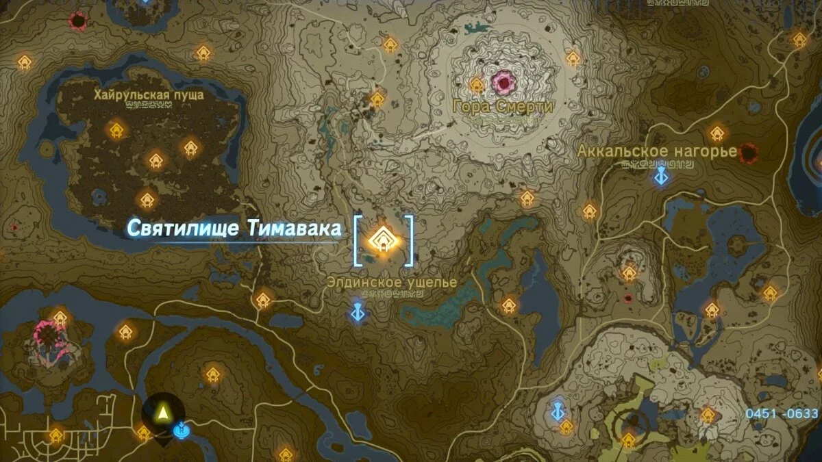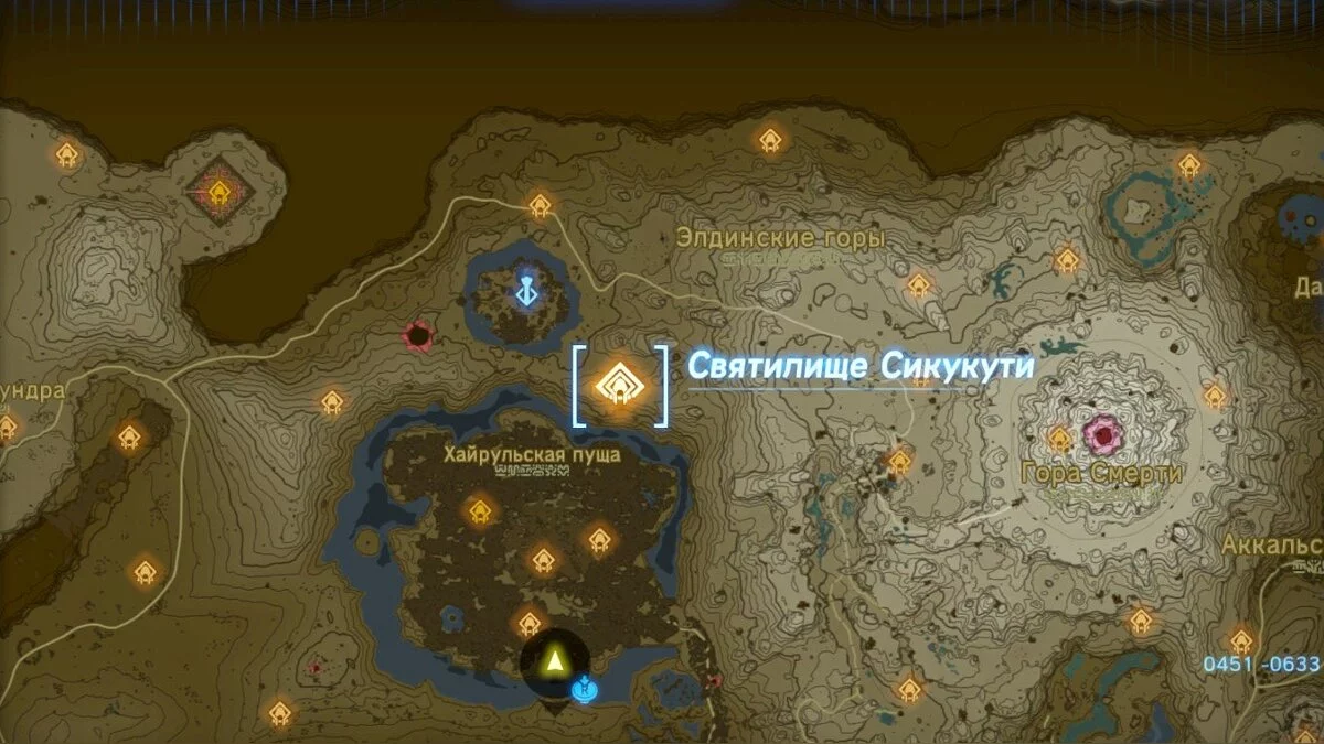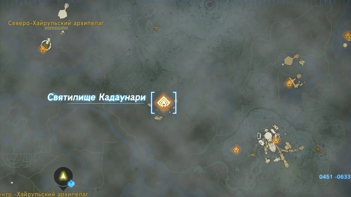 - Местонахождение: Святилище расположено к юго-западу от конюшни «Снежная» . Спрятан в пещере «Азанские насосы». Вход в пещеру находится в южной части «Южной тундры». Войдя в пещеру, Линк должен пересечь ледяную воду;