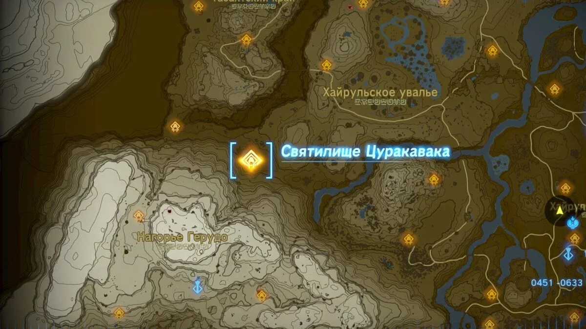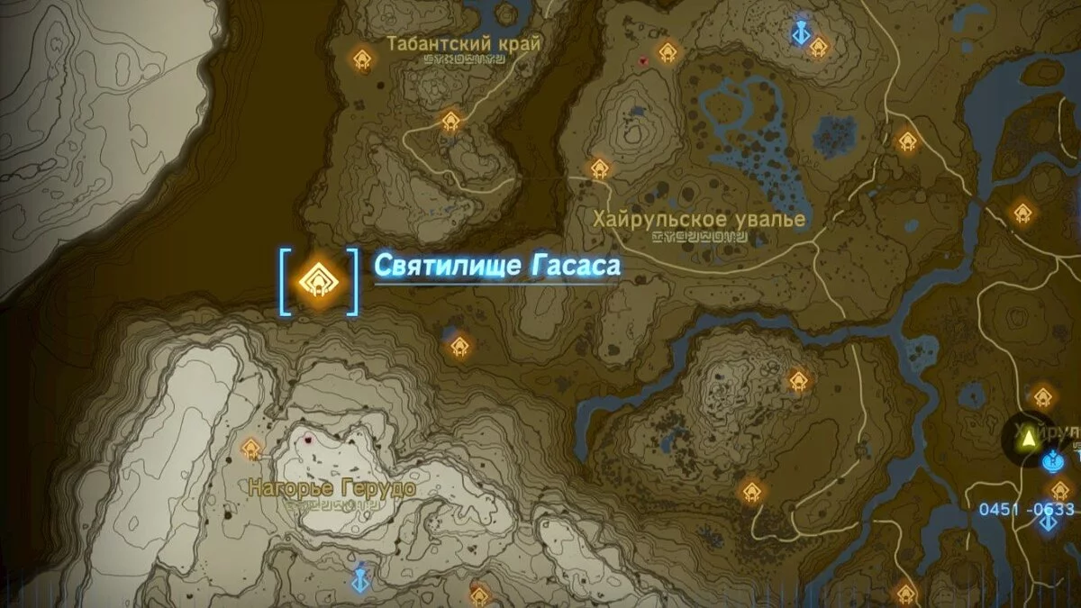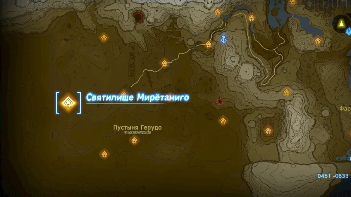 - Местонахождение: Правый нижний угол карты. В ущелье воина пустыни Герудо;