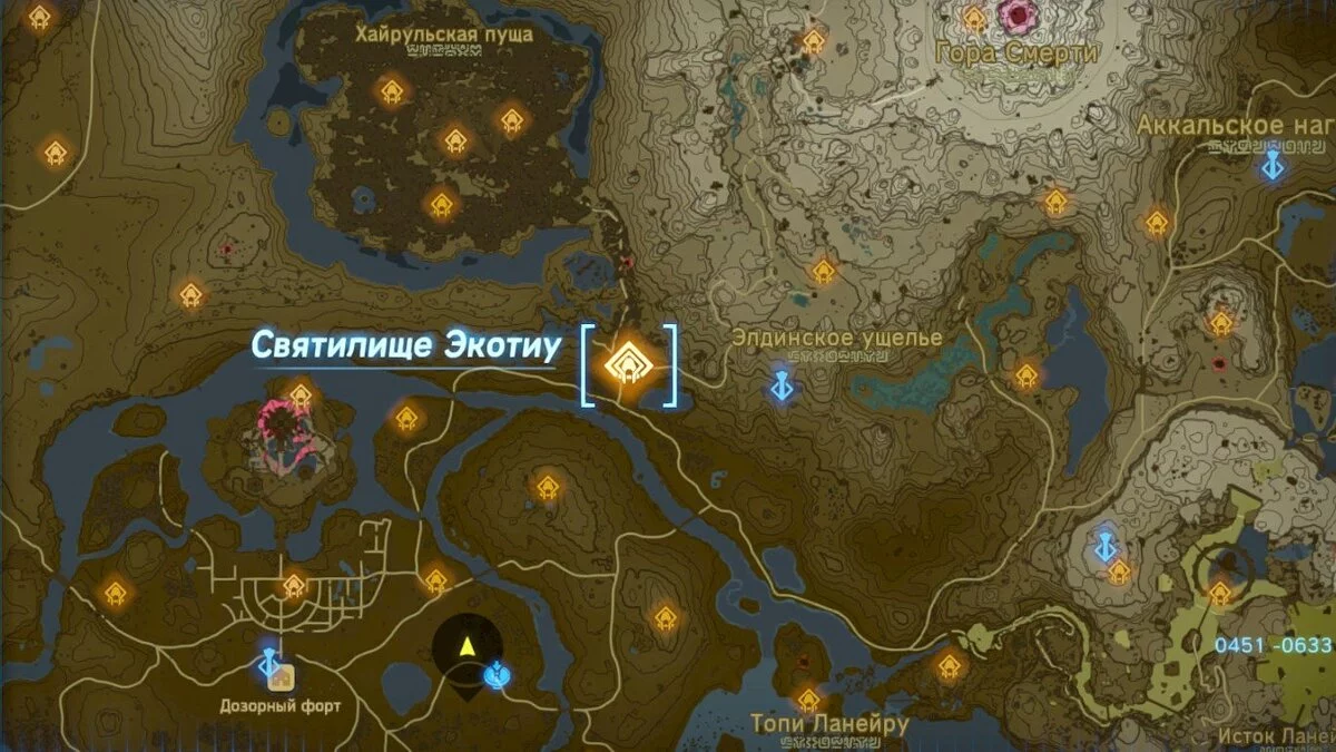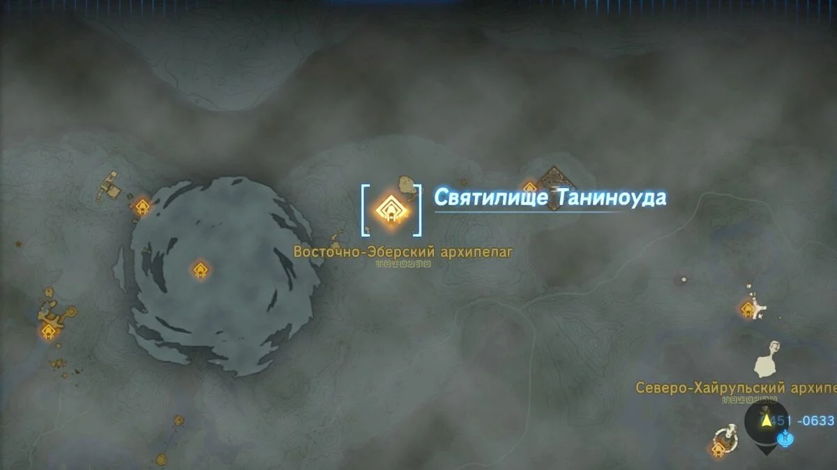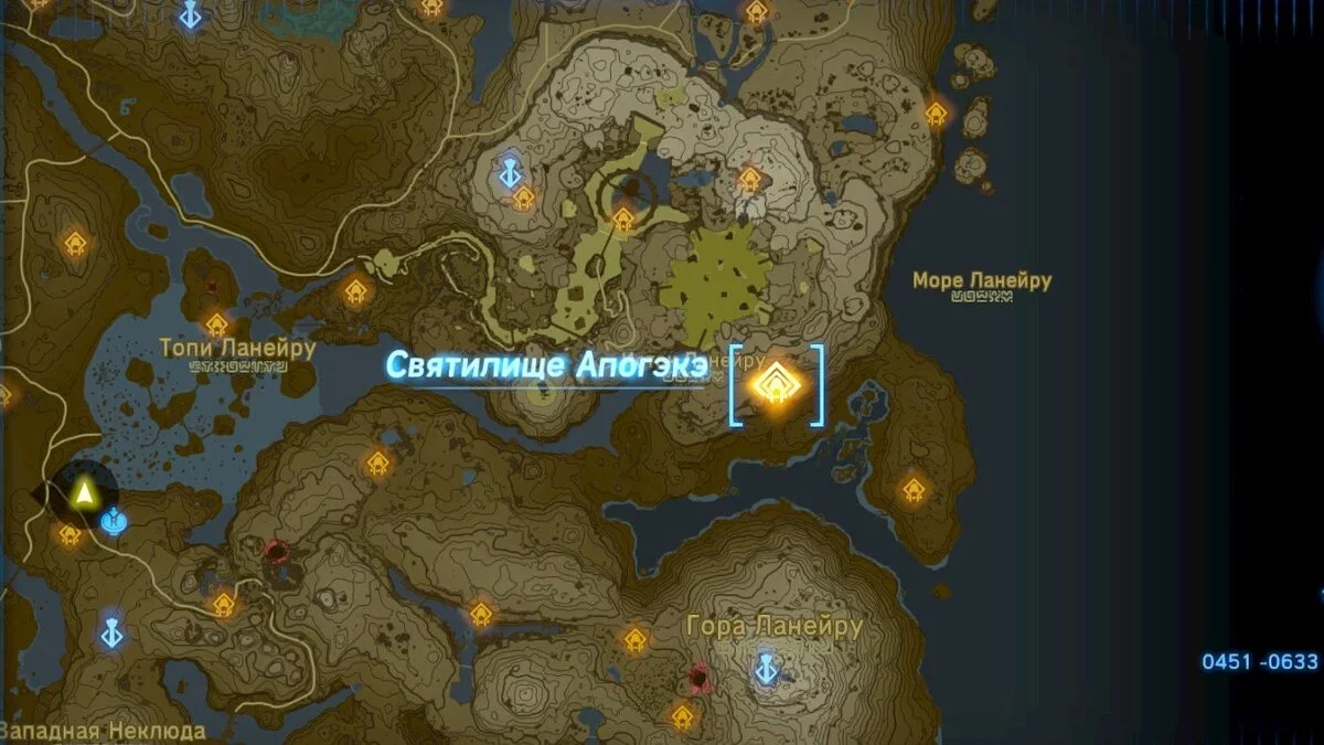 - Местонахождение: Святилище находится в горах Эбра. Крайний левый угол карты, рядом с озером Тотори. Вы увидите очертания белой птицы, высеченной в горе. Летите туда, чтобы найти пещеру;