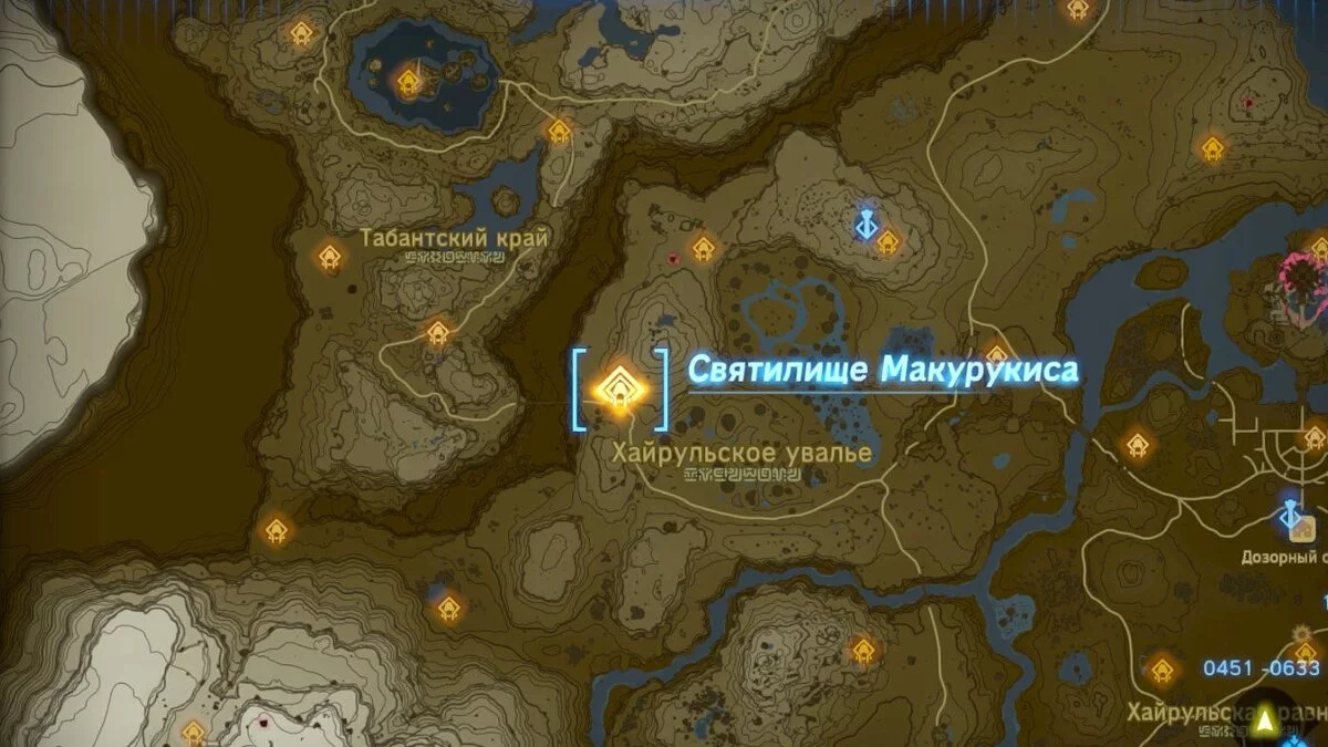 - Местонахождение: Святилище расположено к северо-западу от конюшни моста Табанта, внутри западной пещеры каньона. Разбейте камни, преграждающие путь вперед. Поверните направо. Следуйте по тропе к другой каменной стене. Разбейте ее тоже и продолжайте идти, пока не дойдете до противников. Убейте их и сломайте каменную стену сбоку. Вход в святилище находится в самом низу;