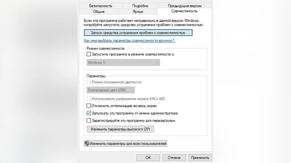 - Поставьте галочку в «Запускать эту программу от имени администратора»;