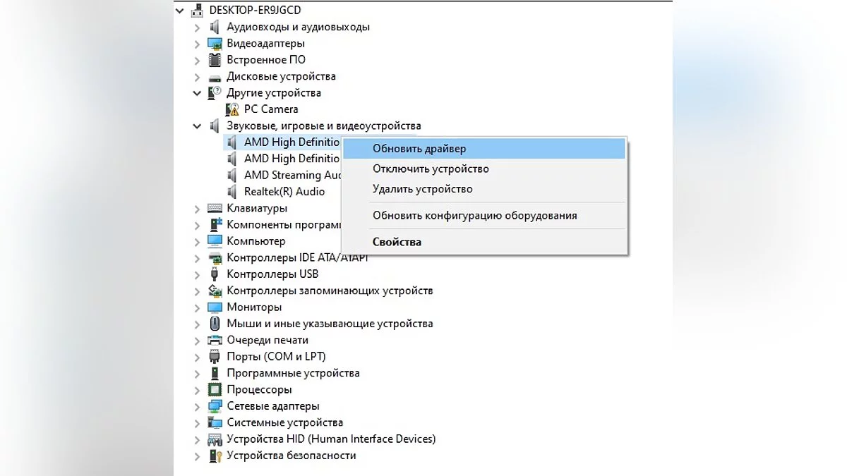 - Кликните «ПКМ» на основном аудиоустройстве и выберите «Обновить драйвер»;