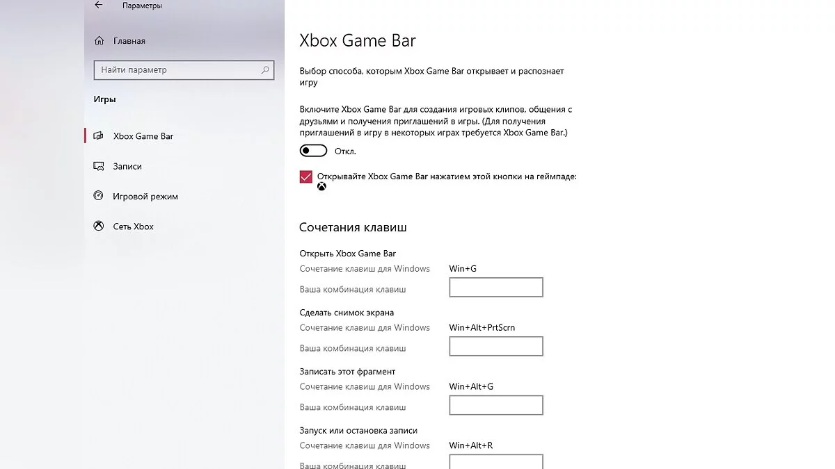 Как ни странно, но встроенная игровая панель Xbox может создать проблемы для запуска The Outlast Trials и приводить к ошибке f0c19. Вы можете отключить её в настройках системы: