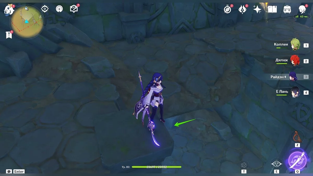 Паймон предложит следовать по рельсам таратайки. Так вы упрётесь в тупик, однако слева будет проход. Бегите по нему, пока не увидите очередную капельку. Чтобы освободить её, достаточно использовать элементальный навык или заряженную атаку любым Гидро персонажем. Проследуйте за ней, чтобы получить обычный сундук.