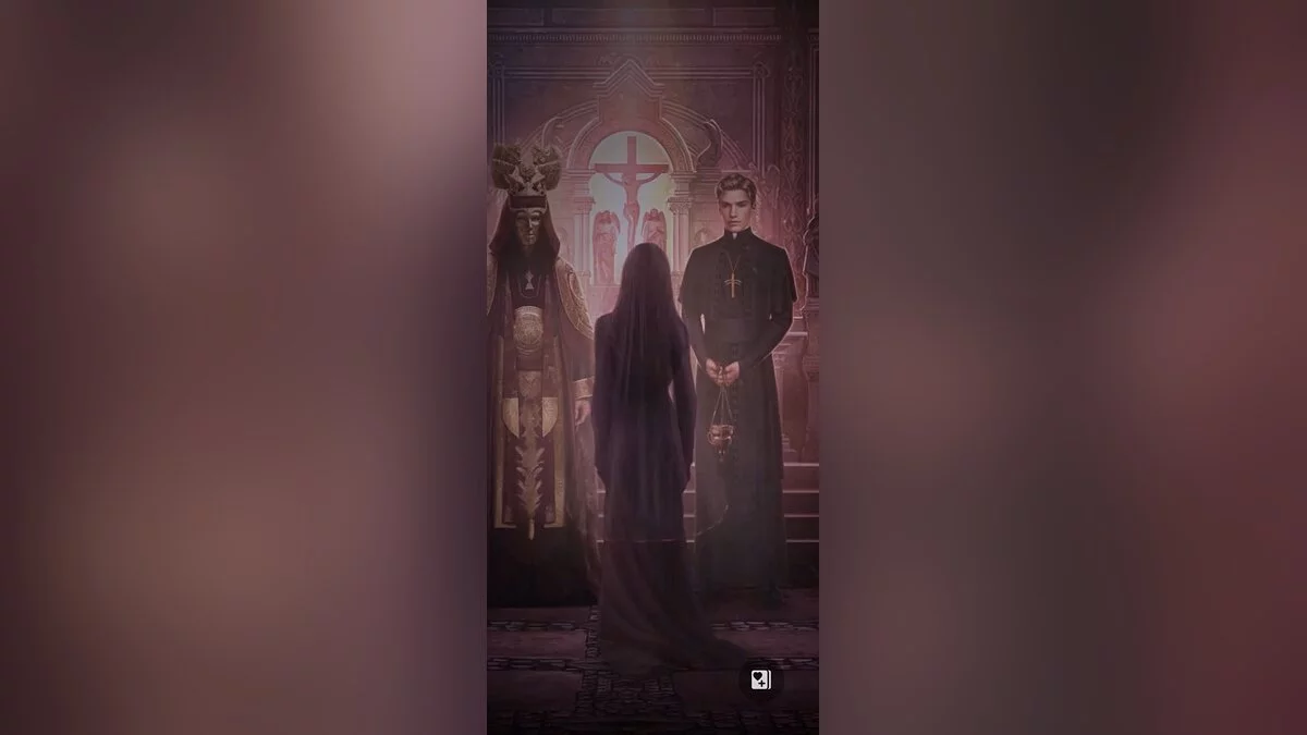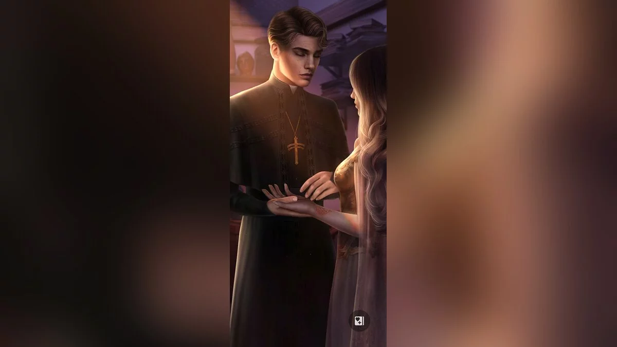 Героиня встречает священника, который знает истину, но не выглядит враждебно.