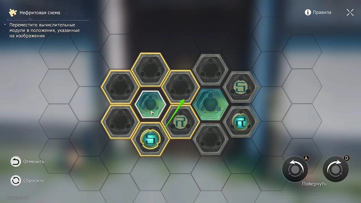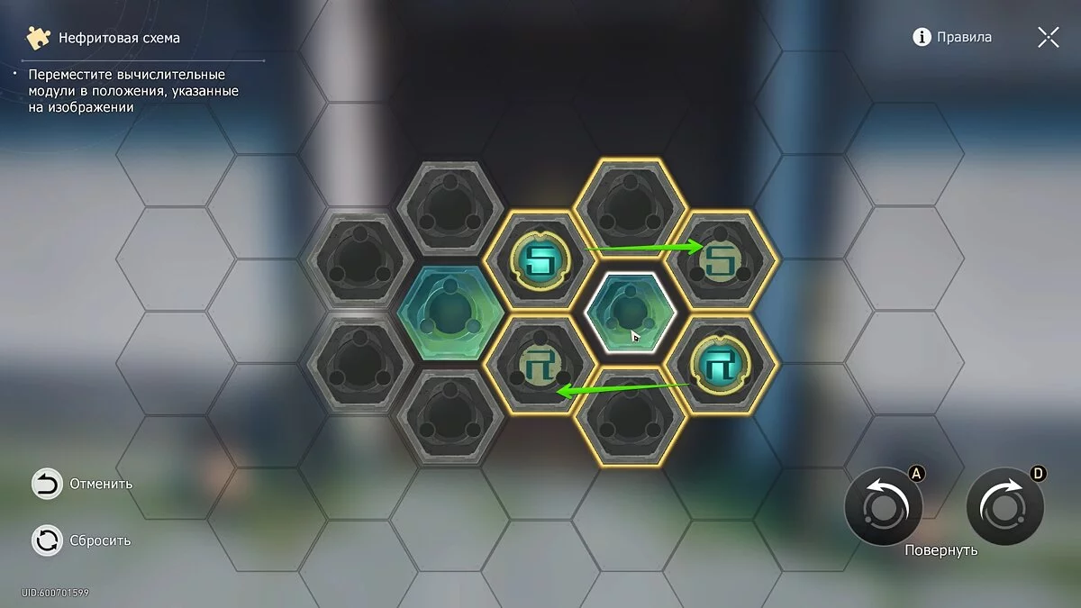 Теперь выберите стартовое положение (средний и маленький диски), после чего поверните их дважды. Заберите ценный сундук.