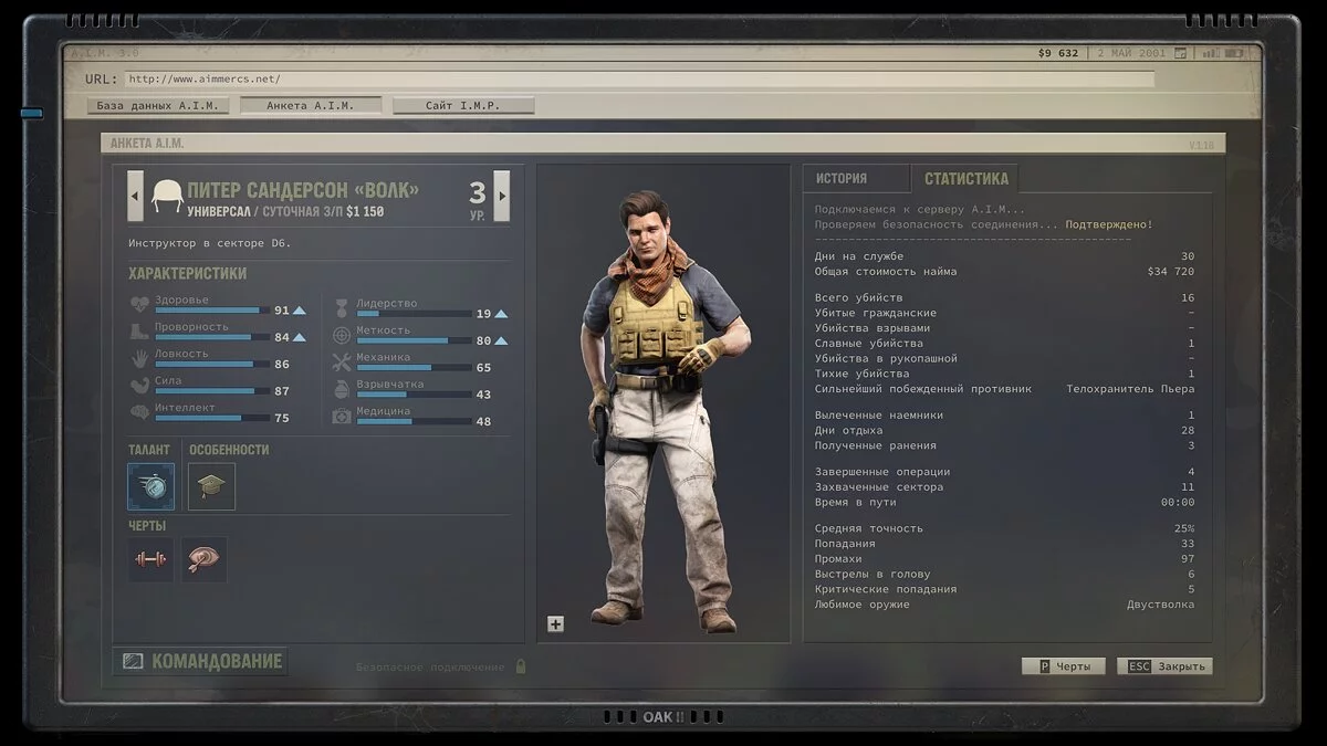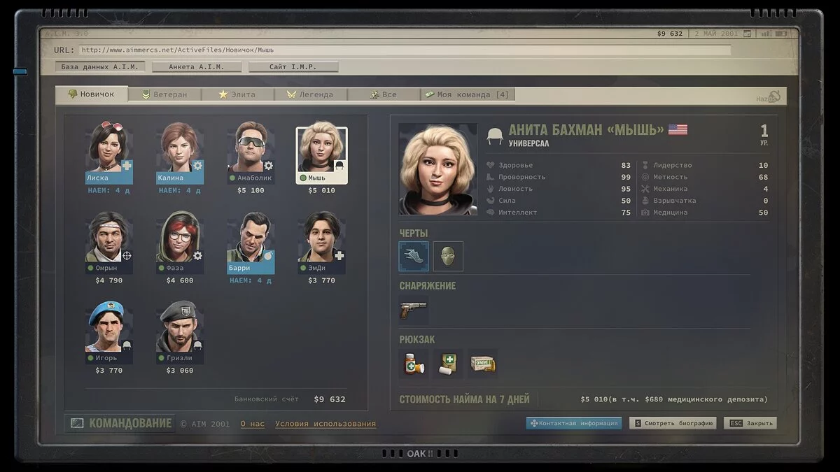 Недавно мы уже описывали лучших наёмников для старта в Jagged Alliance 3, однако вы можете экспериментировать и даже создать собственного бойца. При выборе солдат мы рекомендуем обращать внимание на ловкость, проворность и меткость. Также не советуем заморачиваться с дорогими наёмниками — на старте денег довольно мало, а подобные бойцы не отличаются выдающимися навыками.