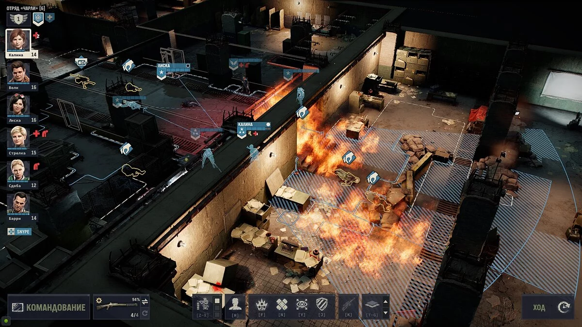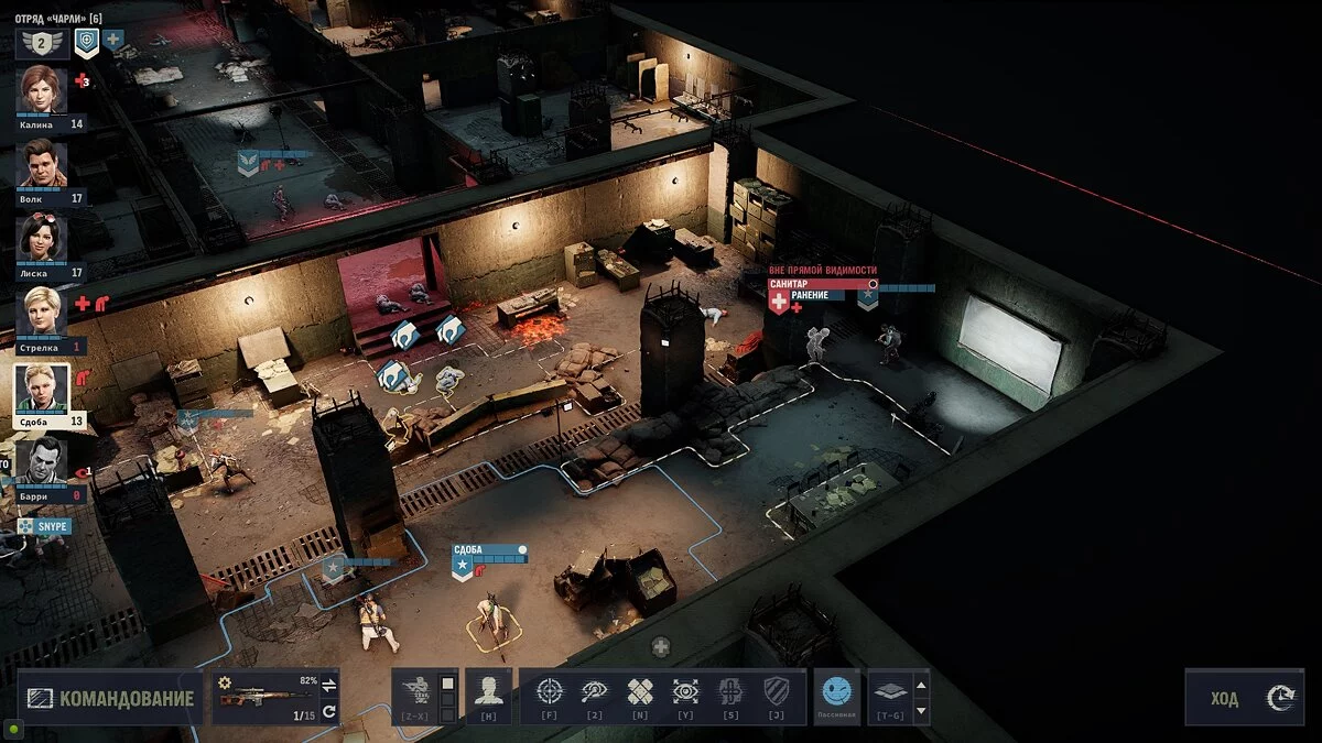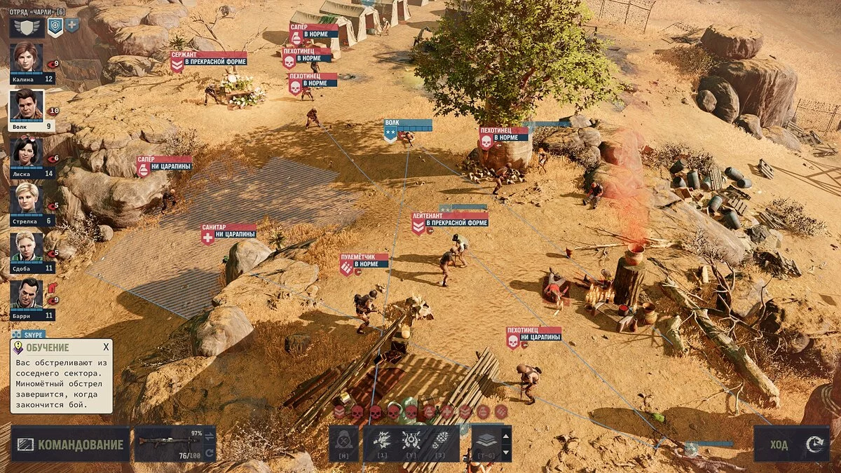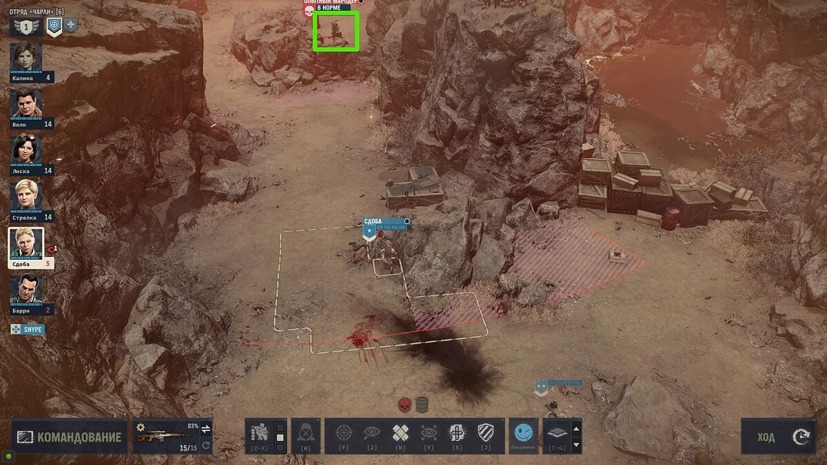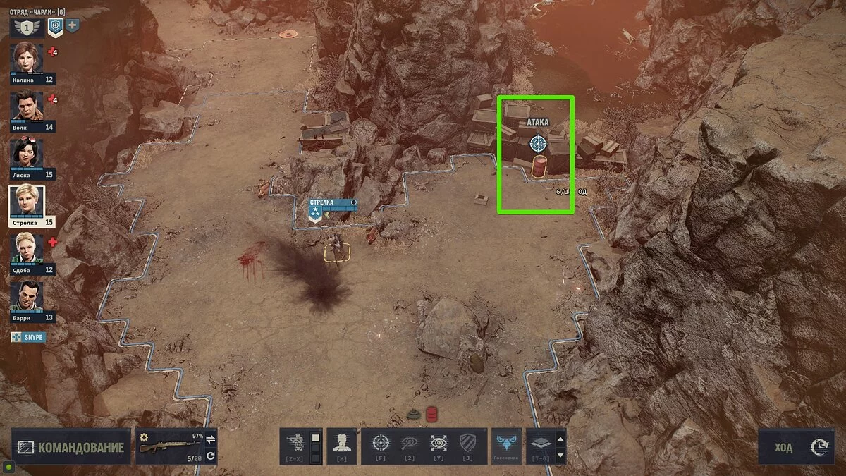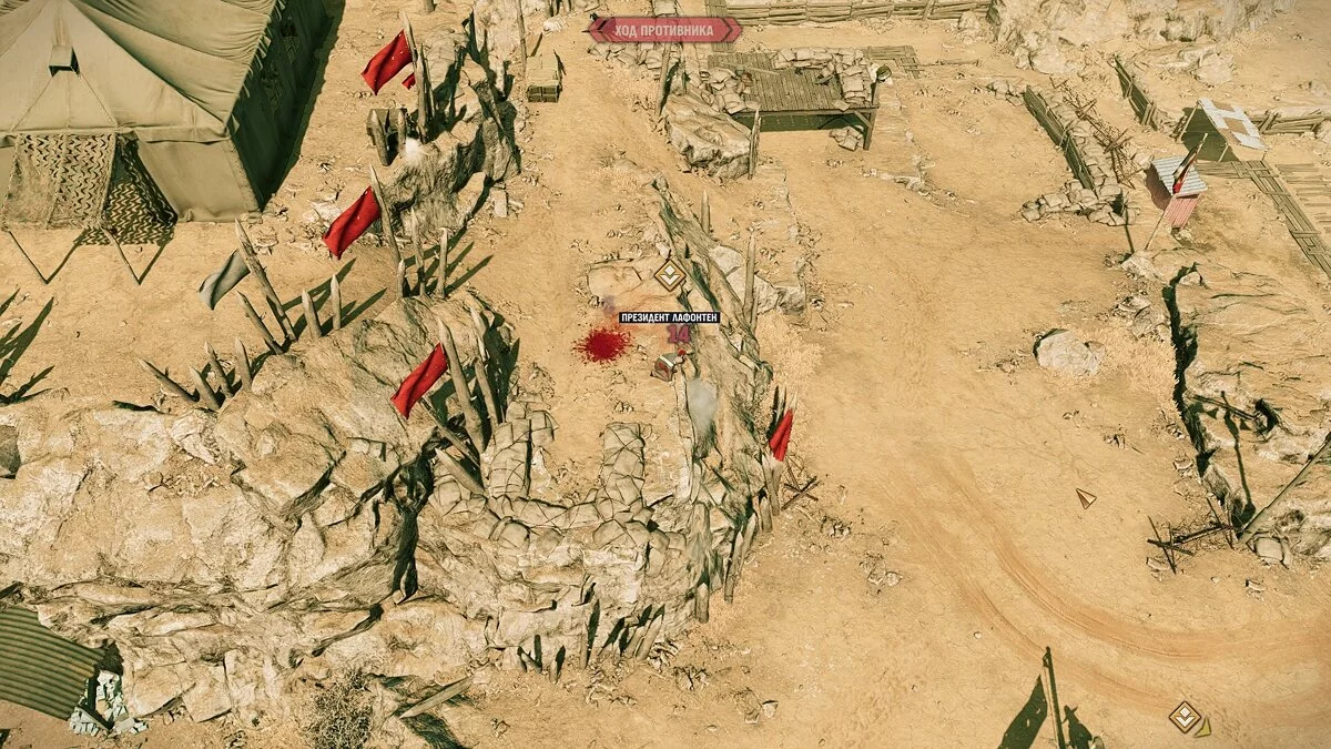 Но укрытие, какое бы оно ни было, не гарантирует полную защиту. В конце каждого хода советуем оставлять 1-2 очка действия каждому герою, чтобы иметь возможность сменить положение на «лёжа».