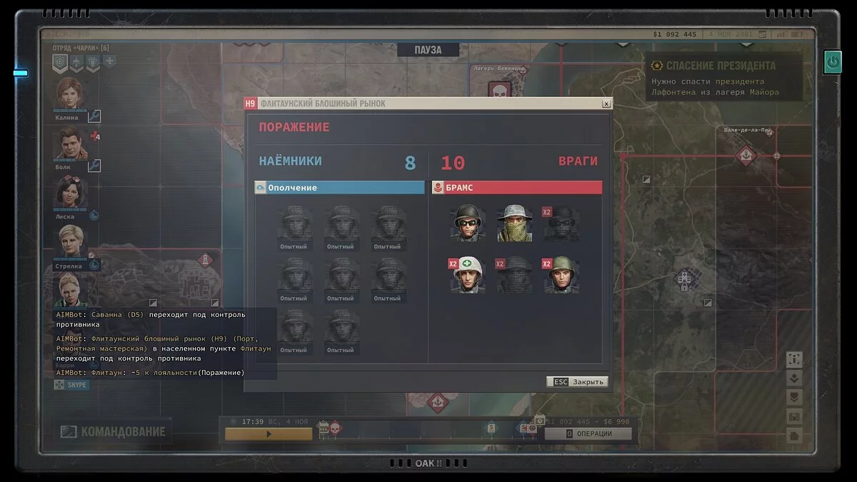 Если вы не явились на встречу с Корасон в квадрате «E9», то по пути на карте начнут появляться другие наёмники. Они станут захватывать квадраты один за одним, а ваши ополченцы вряд ли смогут противостоять им.