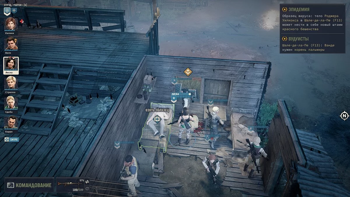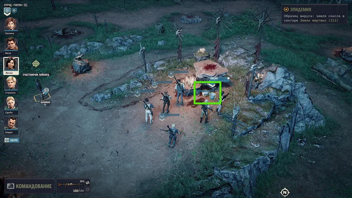 Обвиняем врача в заражении всей деревни. Он позовет несколько солдат, которые окружат ваш отряд. Перебейте врагов и обыщите тело доктора. Далее обыскиваем тело Уилкокса навыком «медицина». Забираем образец и возвращаемся в санаторий.
