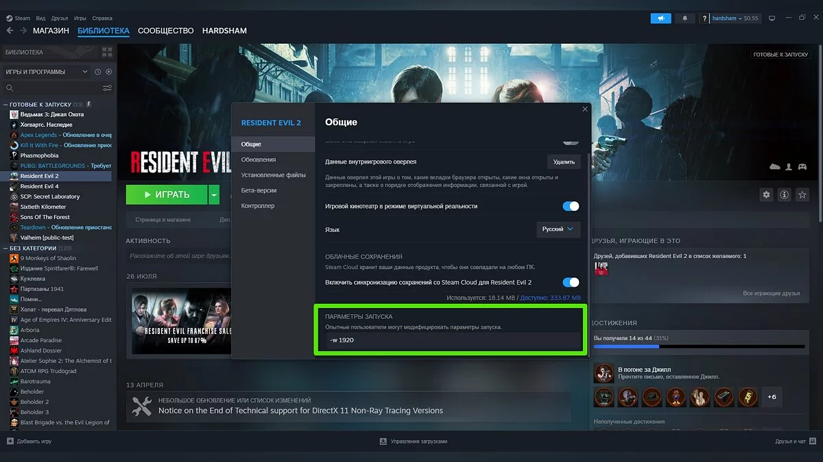 - В поле ввода вставьте параметр: «-w 1920» или «-w 1280» без кавычек.