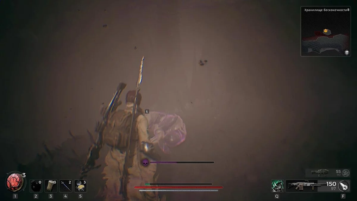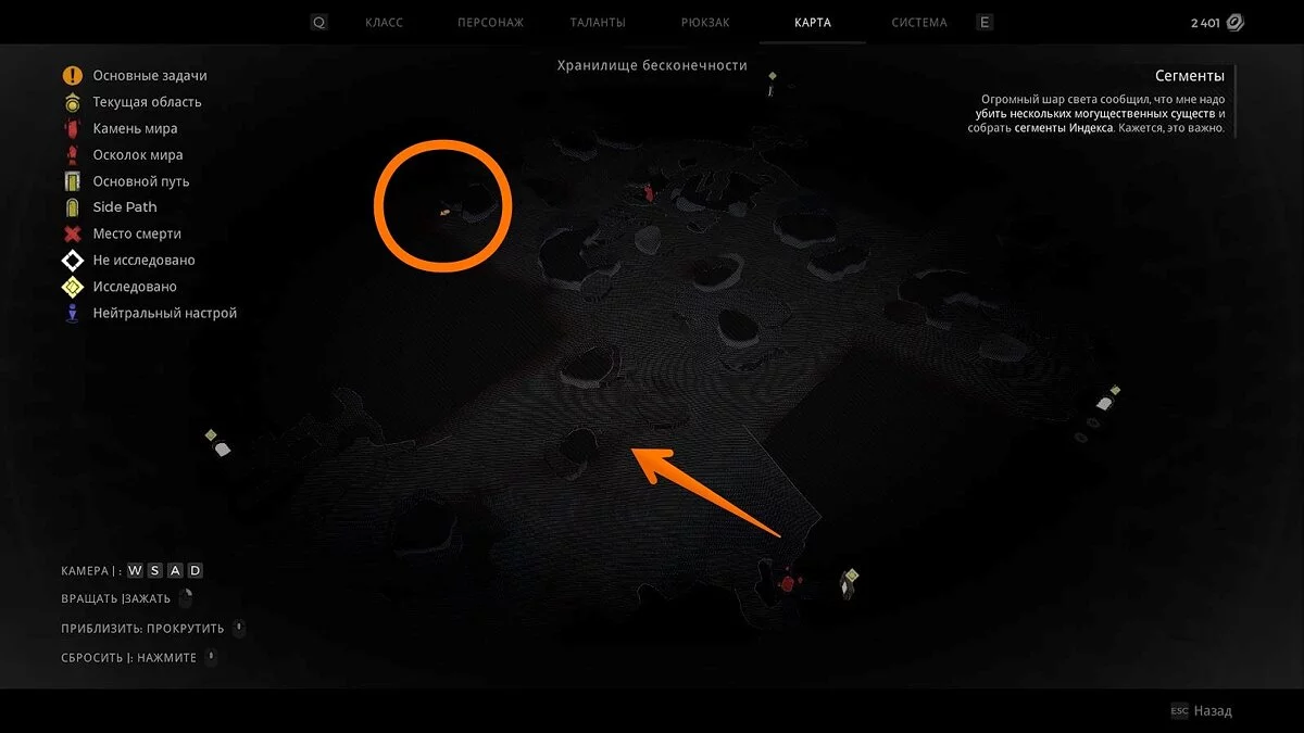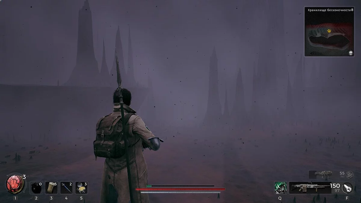 От обелиска «Хранилище бесконечности» двигайтесь на противоположную сторону локации. Вы пройдёте мимо нескольких «гор» и практически сразу заметите ядовитый туман. Следуйте перёд, осматривая места возле новых «гор».