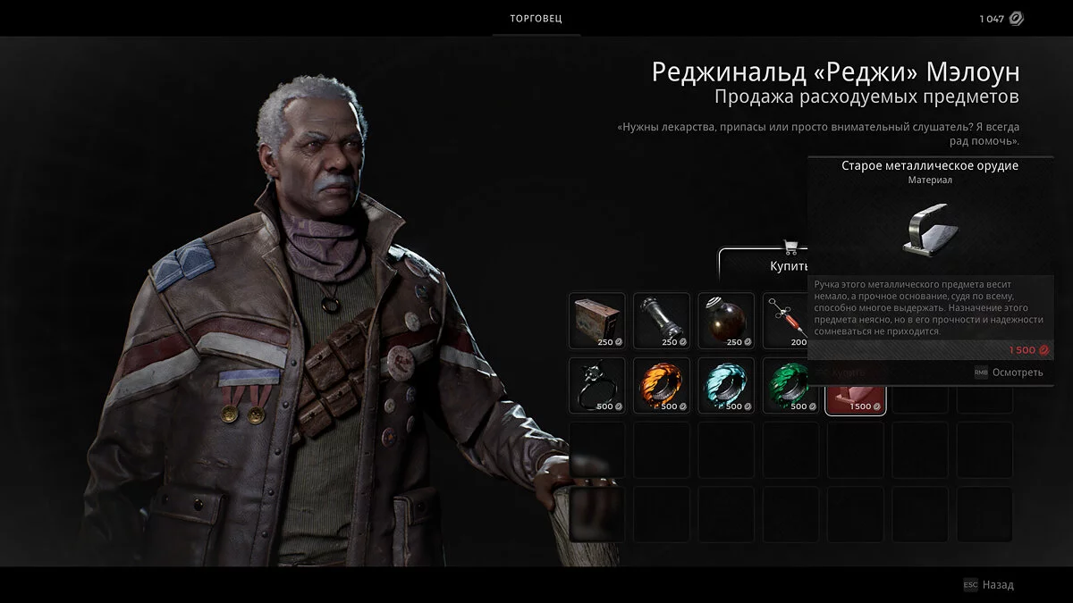 - Боец — у продавца расходуемых предметов Реджинальда (3) можете найти старое металлическое орудие;