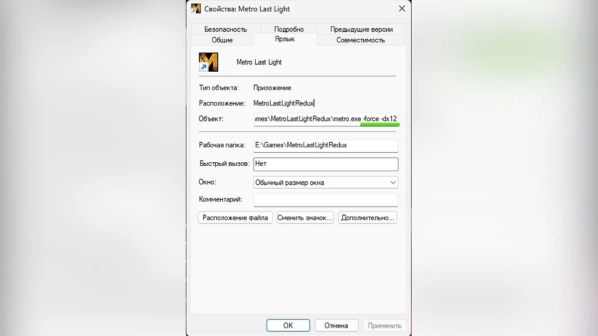 Не всем пользователям помог данный способ, однако вы можете использовать параметры -dx11 или -d3d12 вместо -dx11. Также попробуйте исключить -force из опции запуска. Для игроков, которые приобрели Remnant 2 в Epic Games Store, подобные действия нужно будет повторить, открыв свойства ярлыка исполняемого файла на рабочем столе, после чего вставить опции через «пробел» в строке «Объект».