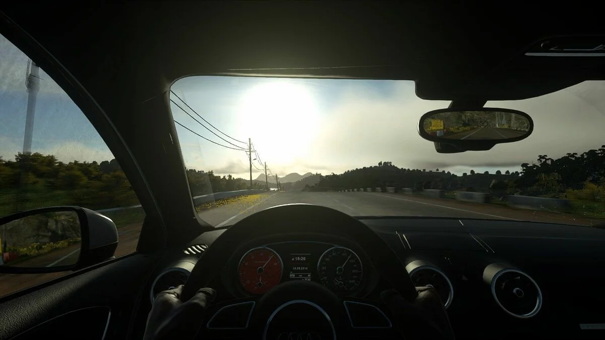 Визуальная составляющая DriveClub по большей части выполнена на «отлично», уровни в Шотландии, например, превосходны. Если вы любите любоваться пейзажами то игра вас не разочарует. Единственный минус — это блик от солнца, закрывающий подчас половину экрана и мешающий спокойно ехать, да и освещение может показаться излишне контрастным. Зато работа системы освещения ночью бьет любых конкурентов — световые эффекты завораживают, особенно неоновое свечение.