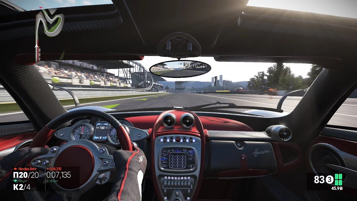 Project CARS запоминается редкими по качеству реализации погодными эффектами, особенно когда попадаешь в дождь с туманом и идешь чисто по приборам, проработанными восходами солнца (закаты, увы, выжигают глаза), а также рядом умных компьютерных помощников, заботливо охраняющих игрока на легком и среднем уровнях сложности от «бочек» и «петлей» во время трассы.