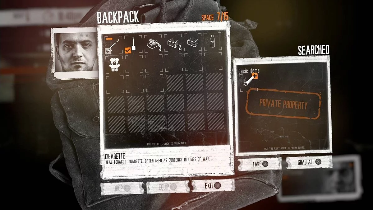 Не знаю зачем, но 11 bit Studios постарались максимально усложнить жизнь консольным игрокам. Без указателя мыши, во-первых, довольно сложно выбрать фиксированную позицию для очередного стула или кровати, а во-вторых, еще сложнее выбирать нужную опцию под интерактивным предметом. В итоге в напряженных моментах можно запросто помереть, наворачивая круги под очередной дверью. Почему-то позицию выделенного кружочка с пиктограммой действия привязали к позиции персонажа на поверхности локации, вот и приходится заниматься не пойми чем.