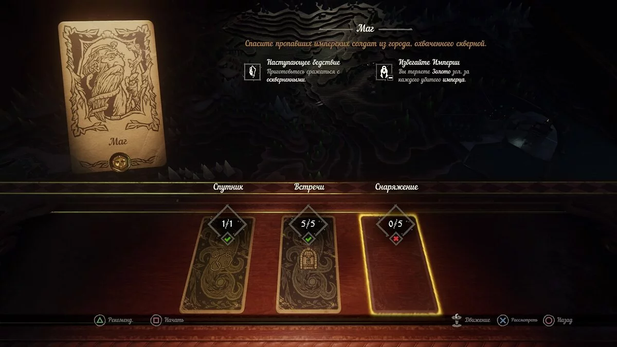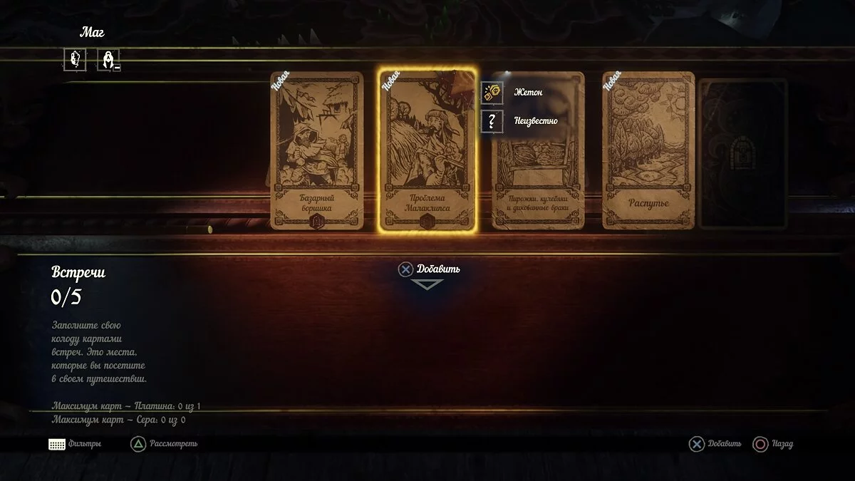Сформировав колоду из своих карт, можно приступать к новой истории. Дилер подхватывает карты и, совместив их со своими, выкладывает на стол рубашкой вверх в виде определенной последовательности, в начало которой ставится золотая фигурка игрока. Передвигаться следует только на соседние карты, причем можно без проблем возвращаться назад и открывать еще не открытые «Встречи». Именно так называются те карты событий, что мы изначально набирали себе в приключение.