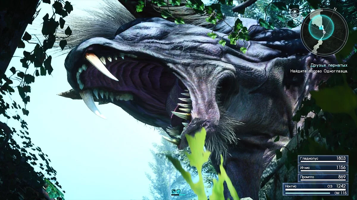 В боях также нашлось место QTE-моментам. К примеру, в некоторых ситуациях на экране загорается значок парирования, который предусматривает своевременное нажатие нескольких кнопок. В теории такая система должна быстро надоесть, но на практике сражаться даже с относительно слабыми врагами очень интересно. К тому же в поединках с сильными врагами нужно включать тактику. Во-первых, большую часть прохождения мы деремся в компании трех друзей, каждый из которых обладает уникальными навыками. Игнис превосходно использует магию, Гладиолус служит неким танком, а Промпто превосходный стрелок.
