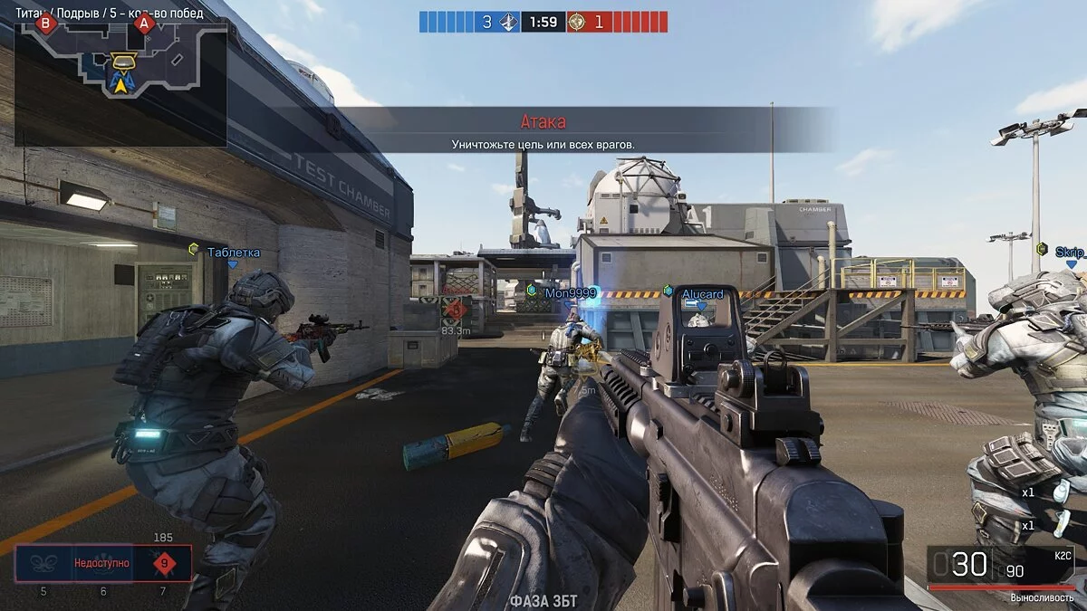 Прежде всего это два новых режима — «Захват» и «Бой за ресурсы». С первым все понятно: бегам от одной точки к другой и пытаемся набрать побольше очков для своей команды. А второй уже куда интереснее. Это гибридный режим игры, в котором у каждой команды периодически появляются управляемые компьютером бойцы. Боты делятся на несколько видов, что хорошо, но очень тупые, что плохо.