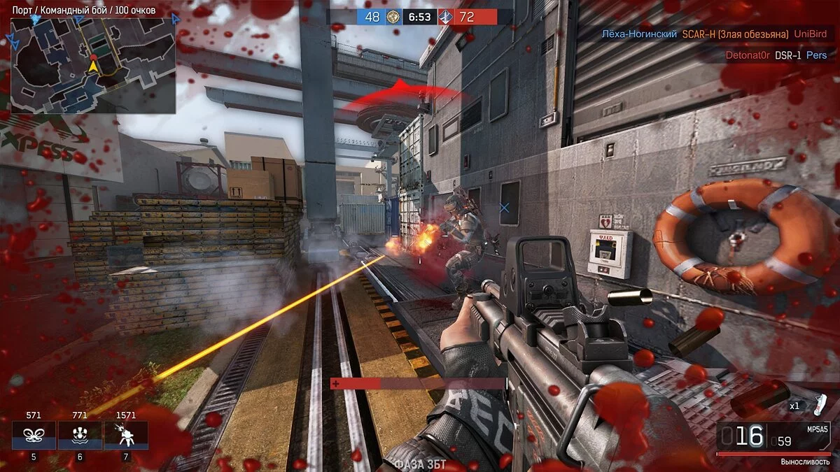 Всего представлено более трех десятков огнестрельного оружия. Есть и бессмертная классика вроде MP5 и AR-15, и более современные модели вроде AK-12. Стрельба отлично сбалансирована. А вот некоторые режимы по дороге к российскому издателю где-то потерялись. В корейской версии их как минимум пять — командный бой, подрыв, захват, бой за ресурсы и подтверждение убийства.