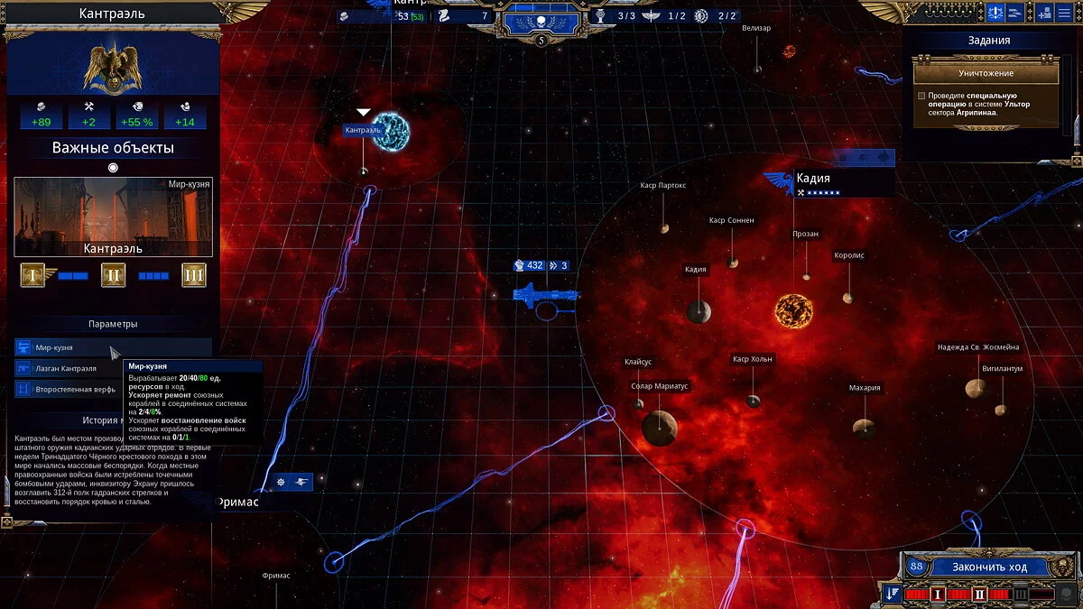 Одно из худших игровых решений — периодические вторжения врагов в разные системы буквально из ниоткуда, чтобы пограбить и создать игроку проблем. Это не чувствуется, когда занято 2-3 региона, но с их ростом приходится регулярно гонять флоты по всему субсектору галактики.