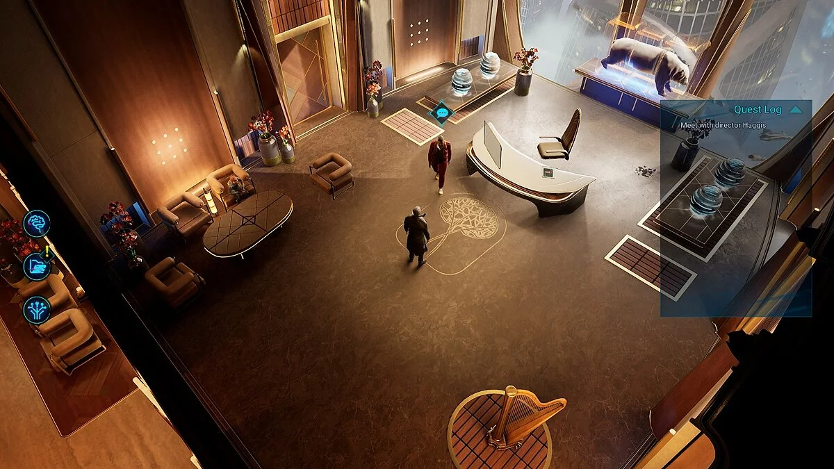 Gamedec выглядит приятно. Достигается эффект не за счёт навороченных технологий, а благодаря отличному дизайну. Герой побывает в залитой неоновыми огнями реальности, мрачной игре про разврат и содомию, солнечной ферме и много где ещё — местность всегда будет симпатичной. До графонистой The Ascent игра не дотягивает, но, в целом, претензий к визуалу нет.