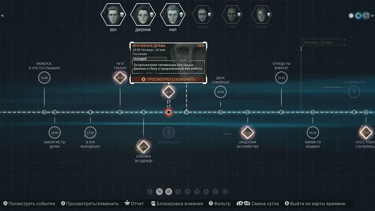 Фишка в том, что у героя есть футуристический девайс, который воспроизводит события прошлого. Технологии отобрали 197 событий, случившихся с персонажами за последнюю неделю, и путешественник во времени может перемещаться между ними в любом порядке. Если пожелаете, можете сразу заглянуть в день пожара, — правда, в этом случае мало что поймёте и уж точно ничего не исправите.