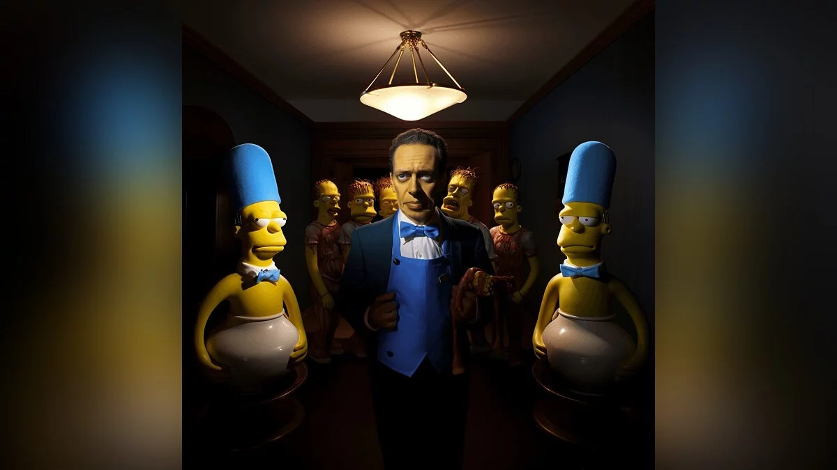 Энтузиаст с ником primocolon решил узнать, каким был бы полноценный фильм ужасов по мотивам популярного мультсериала «Симпсоны». Для этого он попросил Midjourney сгенерировать соответствующие изображения.