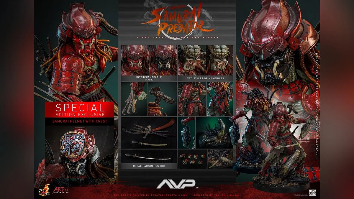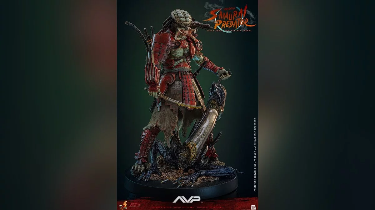 Hot Toys анонсировала коллаборацию с японскими художниками, результатом которой стала крутая детализированная фигурка Хищника в самурайских доспехах по мотивам «Чужого против Хищника». Инопланетный охотник обзавелся несколькими катанами и трофеем — отрубленной головой ксеноморфа.
