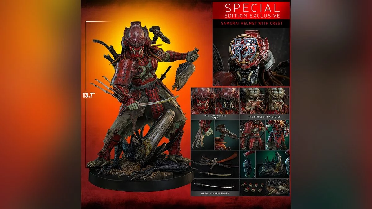 Фигурку Хищника-самурая уже можно предзаказать за 430 долларов (примерно 40 600 рублей) в двух вариантах издания — обычном и коллекционном. В комплекте с последним идет самурайский шлем с уникальным дизайном. Поставки начнутся в июне 2025 года и продлятся до декабря.