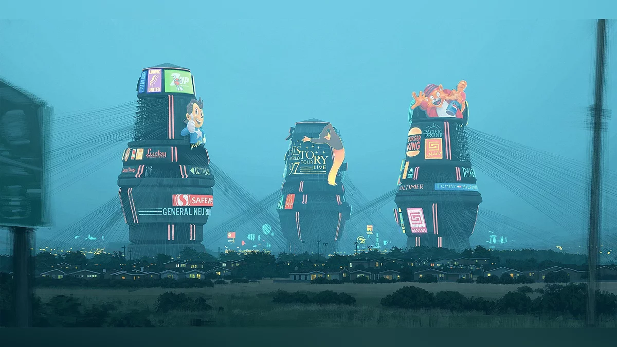 Например, он не раскрывает главных героев, даже не рисует их крупные планы. На некоторых разворотах вообще нет текста, не будет пояснений к многочисленным терминам, понятиям или условиям, да и объяснения мира тоже не будет. Книга «Электрический штат» — это громоздкий, но все еще качественный артбук с претензией на какое-то авторское высказывание, которое некоторые рецензенты, конечно же, нашли, вот только вряд ли оно там было.