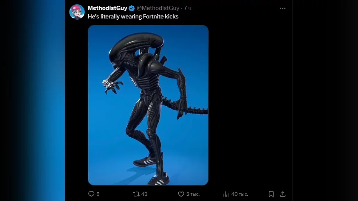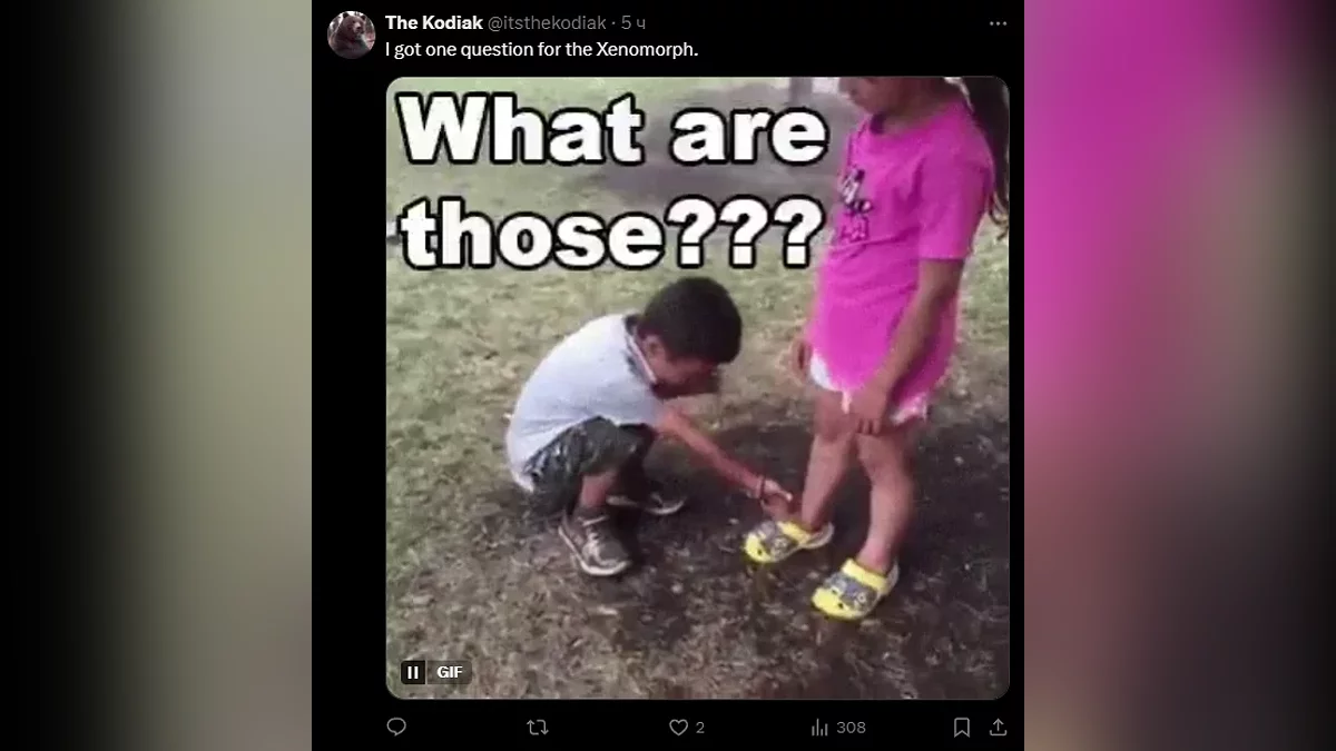 В соцсетях завирусился отрывок со съёмочной площадки сериала Hulu «Чужой: Земля» с актёром, исполнившим роль ксеноморфа. Оказалось, что за кадром Чужой носил легендарные «адидасы», что спровоцировало поток шуток.