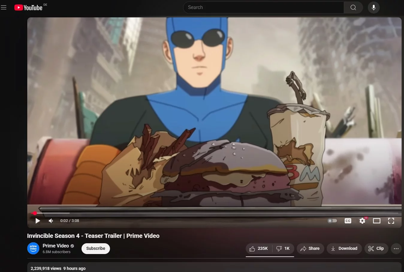Amazon Prime Video выпустила первый тизер четвёртого сезона супергеройского мультсериала «Неуязвимый». Анимационная адаптация брутального комикса получит продолжение в марте 2026 года.