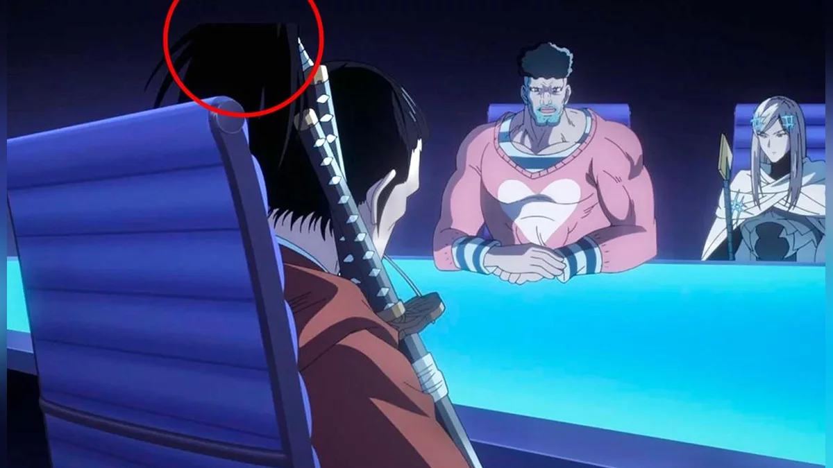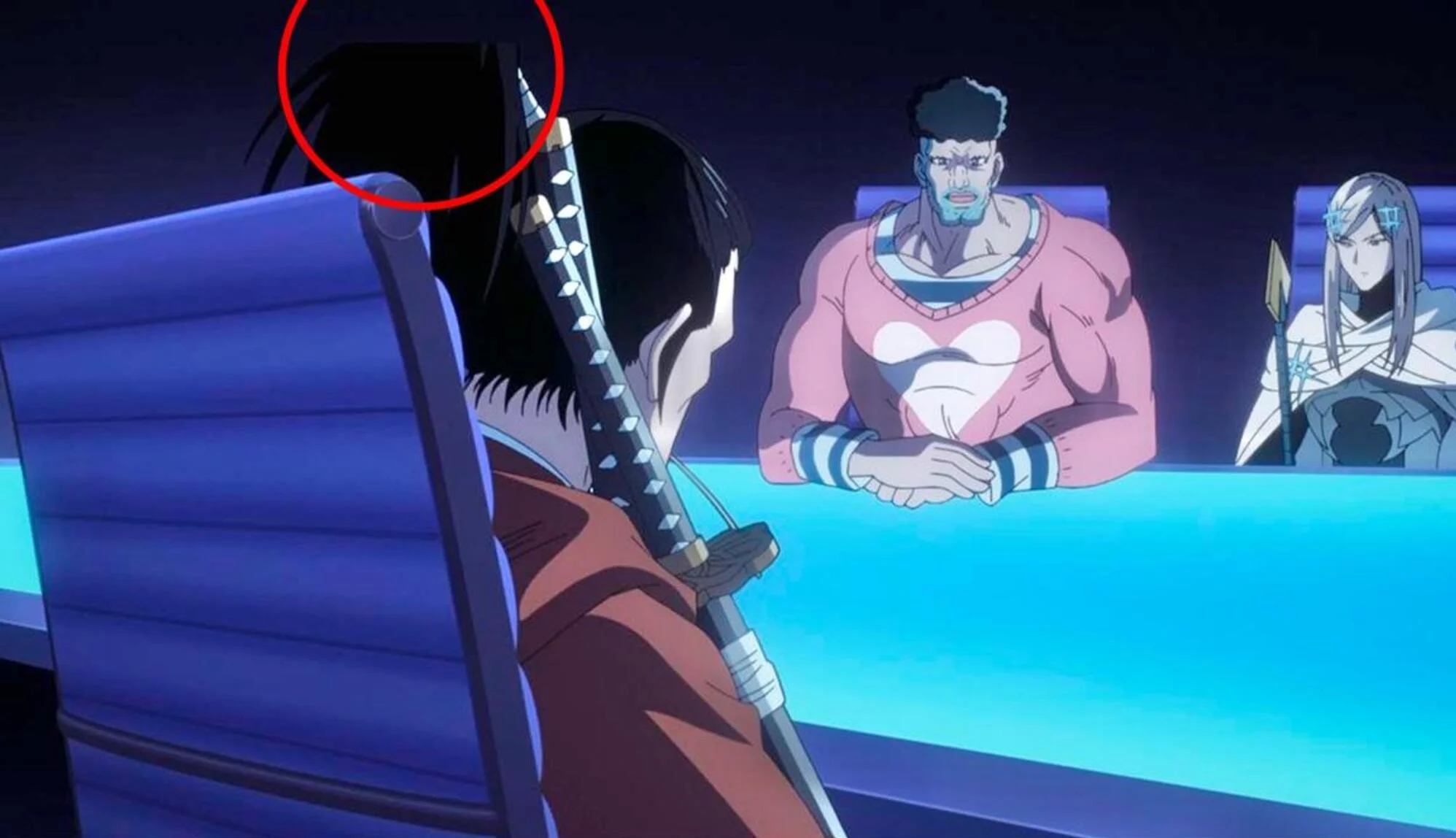 На этом моменте видно, что Атомный Самурай, второстепенный персонаж аниме, сидит с частично обрезанным хвостом. Фанаты быстро нашли момент в оригинальной манге, с которого перерисован кадр.
