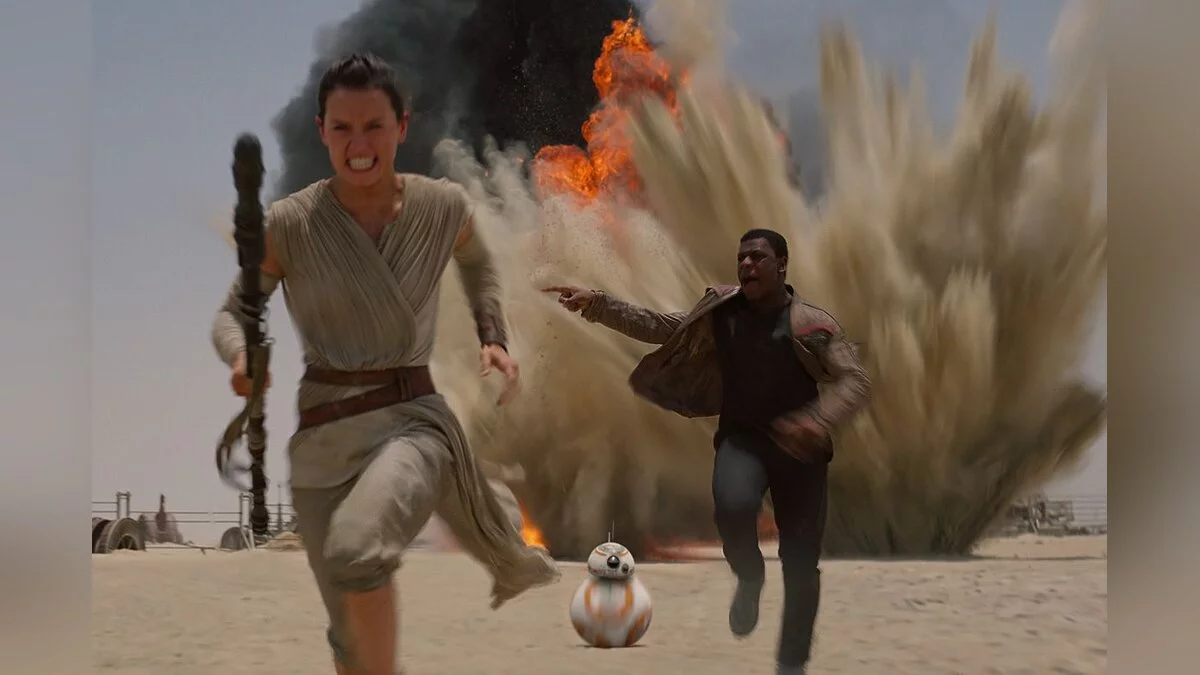 Ведь не только негативные впечатления остались от фильма. Из понравившегося обязательно выделю нового дроида (без сомнения, лучший дебют эпизода!), планету Джакка и возможность увидеть старичков. Чуть ли не главной заслугой седьмой части назову юмор, который ранее напрочь отсутствовал в первых двух трилогиях. Здесь достаточно смешных моментов и остроумных фраз, и они выстроены с чувством такта и расстановки — ощущения, что перед нами ломают комедию, нет.