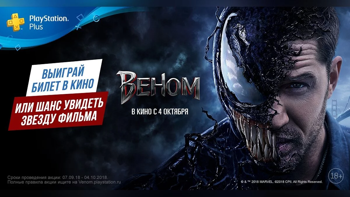 В своем блоге PlayStation Россия объявила, что разыграет билеты в кинотеатр на фильм «Веном» среди подписчиков PlayStation Plus. Кроме того, главным призом розыгрыша является шанс увидеть главную звезду фильма (встреча пройдет в Москве).