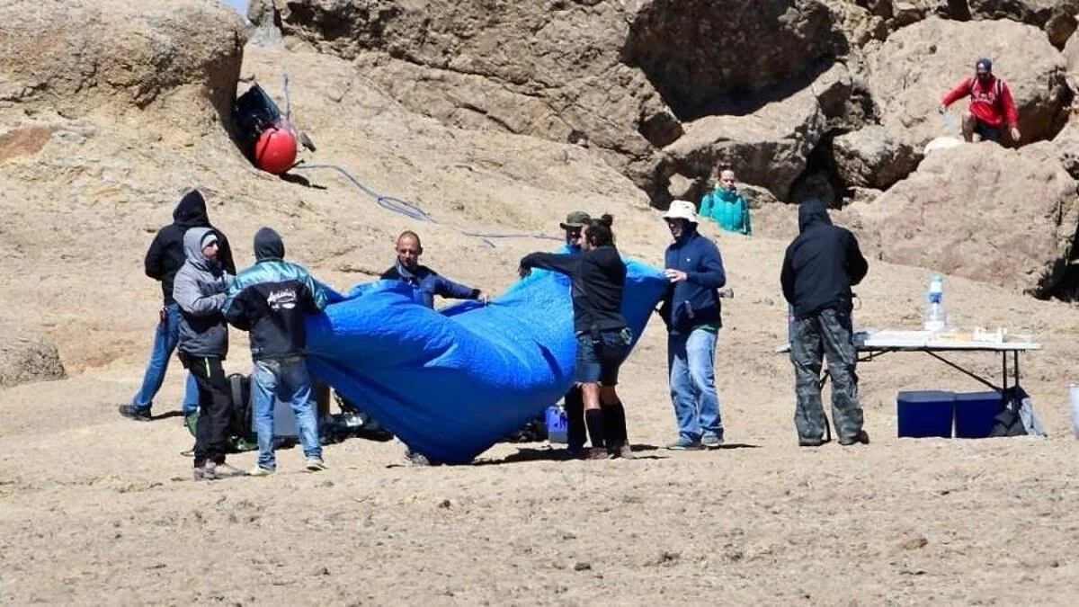 Это единственная фотография, на которой показаны актёры прямо во время съемки. На всех остальных фото команда готовится к работе и осматривает локацию.