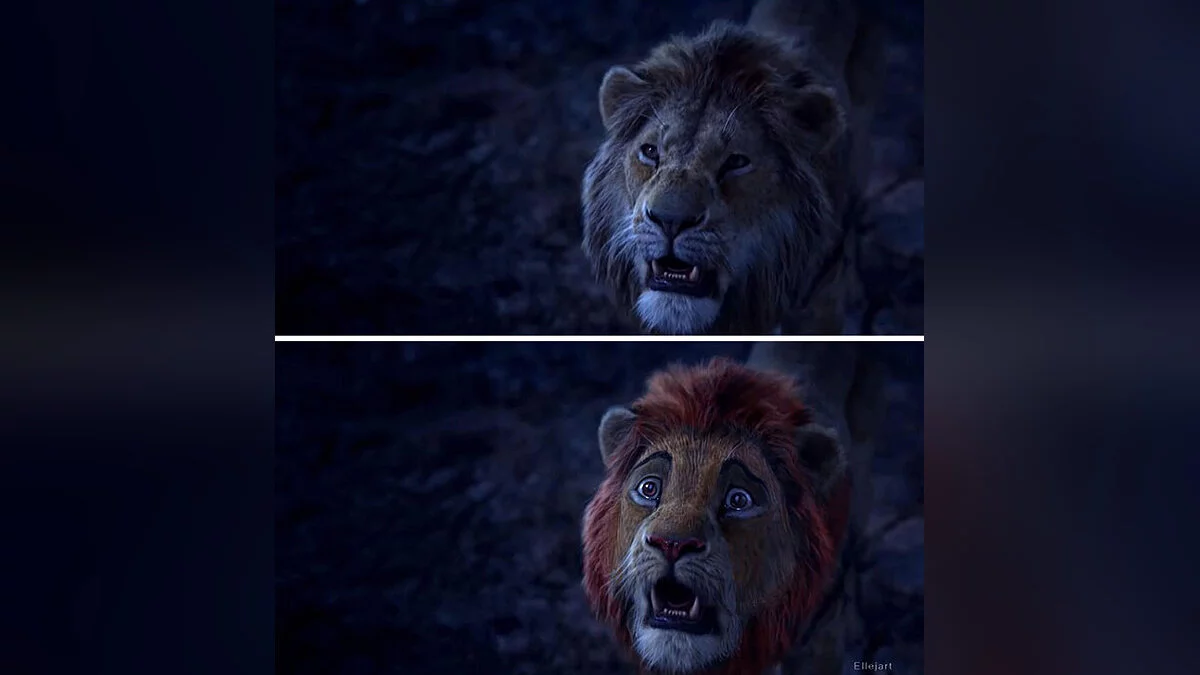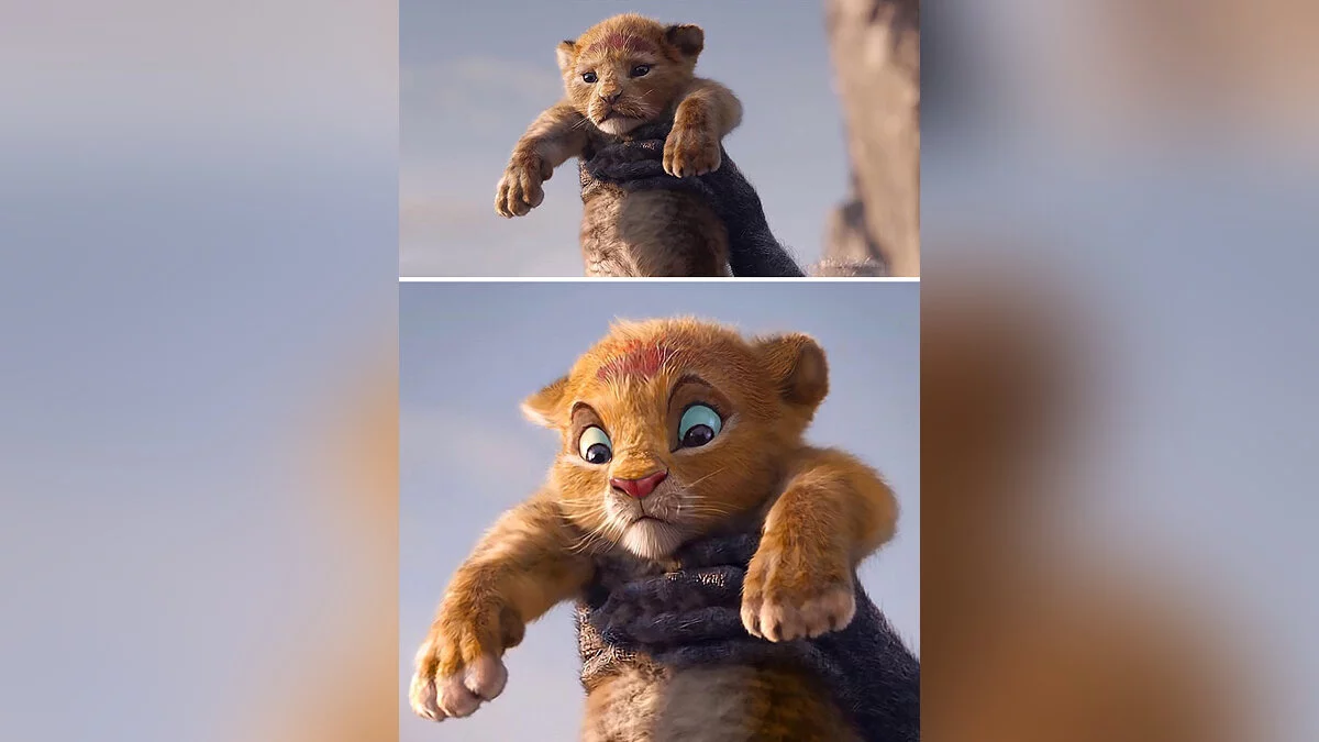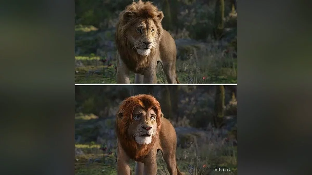 Российский художник перерисовал персонажей фильма «Король Лев» в стиле мультика — картинки со сравнением