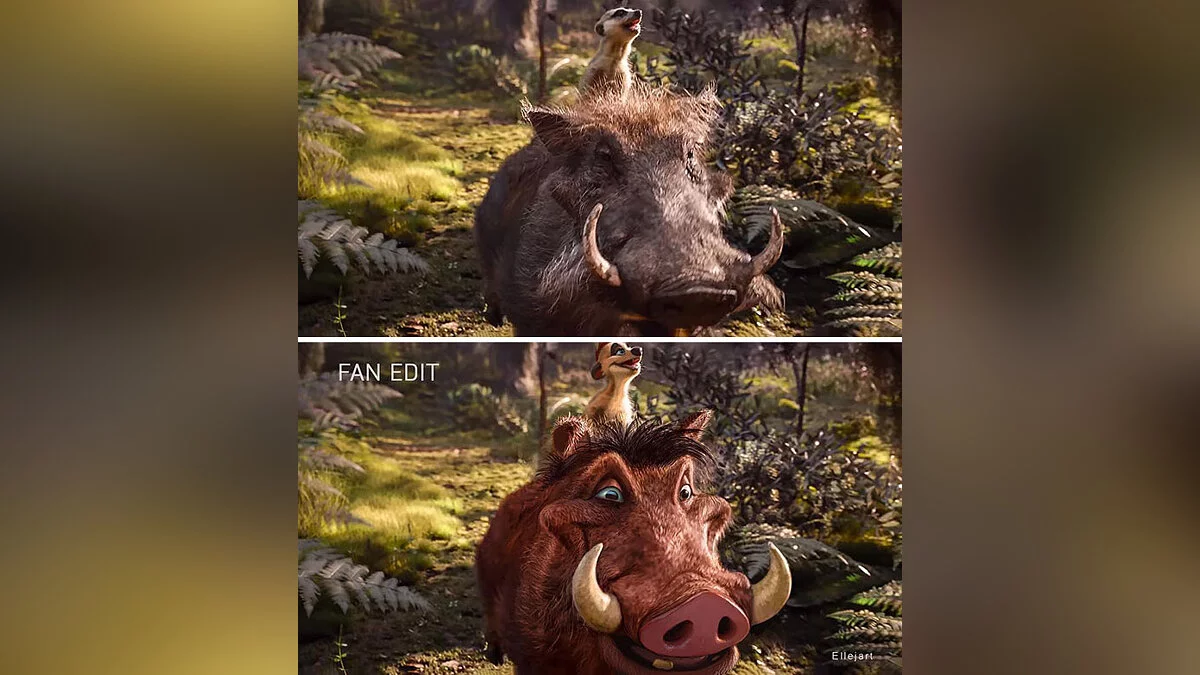 Российский художник с ником ellejart перерисовал главных героев анимационного фильма «Король Лев», сделав их более мультяшными и похожими на свои прототипы из оригинального мультика 1994 года.