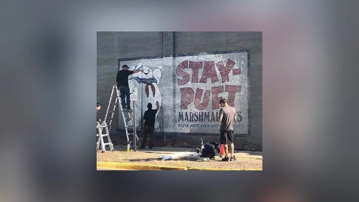 На фотографиях можно увидеть автомобиль из первой части, известный как Эктомобиль (ECTO-1). Также есть отсылка к Зефирному человеку (изображен на плакате).